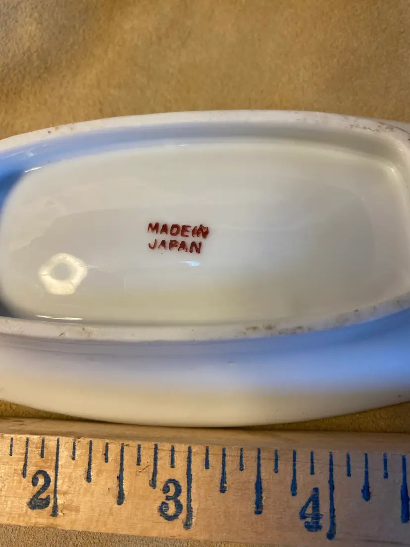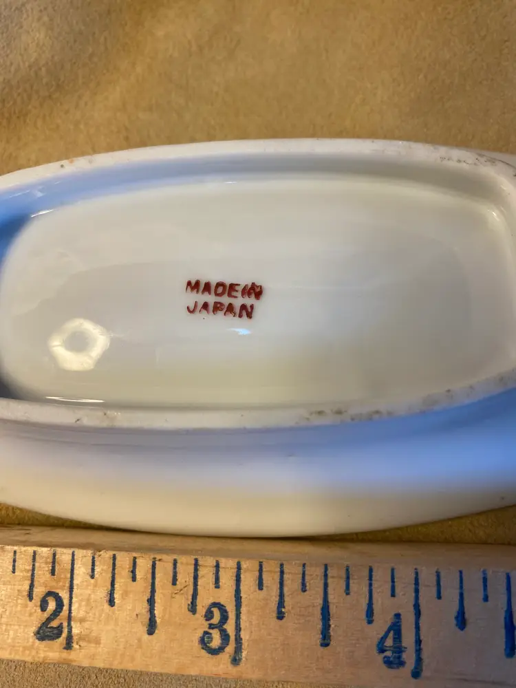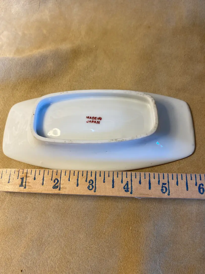 Hand painted porcelain, no chips or cracks, finish is in great condition. Measurements are 6 1/4” long x 2 1/2” wide.