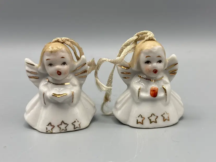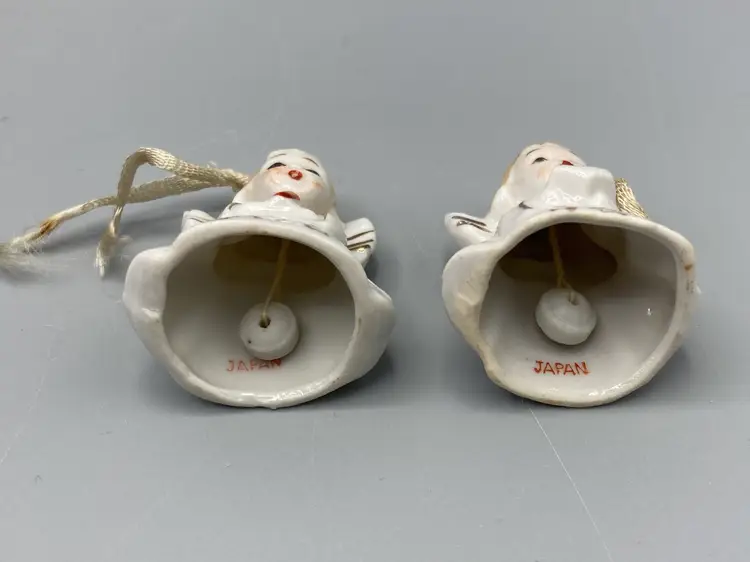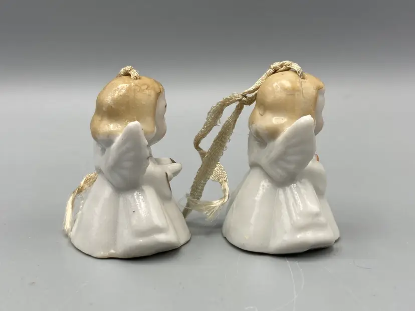 These bells are in good condition. Each angel measures approximately 1 3/4" tall x 1 1/2" x 1 1/4".