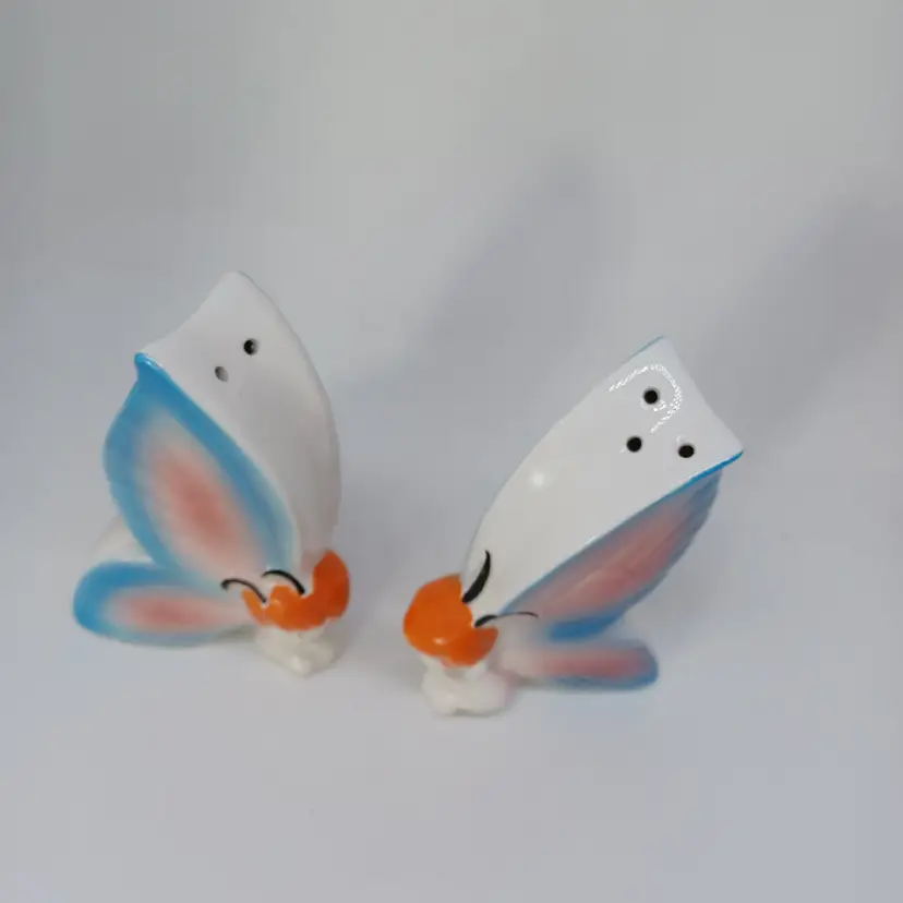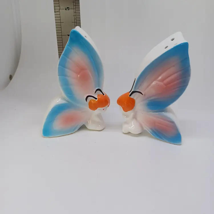 Item: Vintage Japan Pixie Anthropomorphic Fairy Butterfly Salt & Pepper Shakers