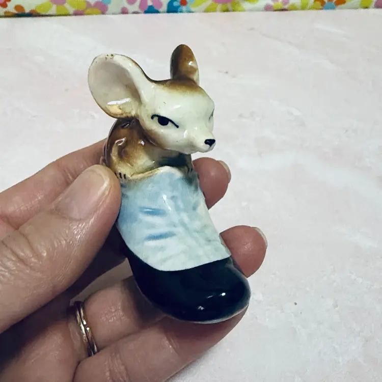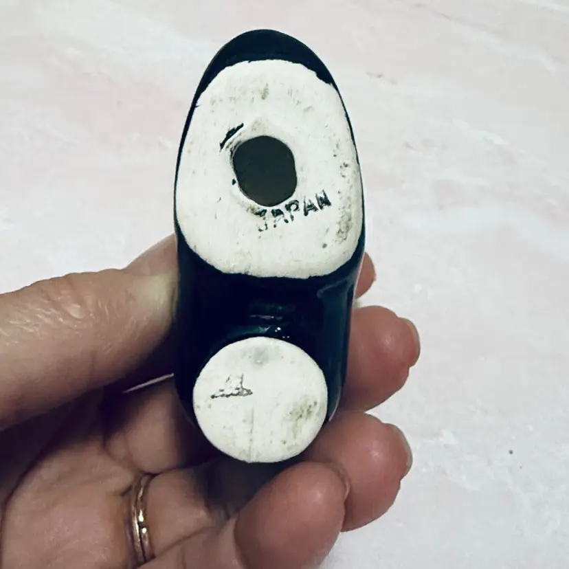 This cutie measures approx. 2 1/2"H. Marked Japan. No issues.