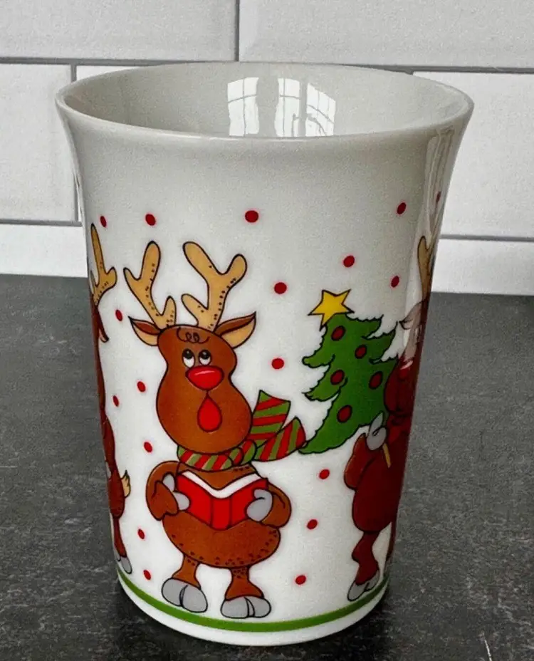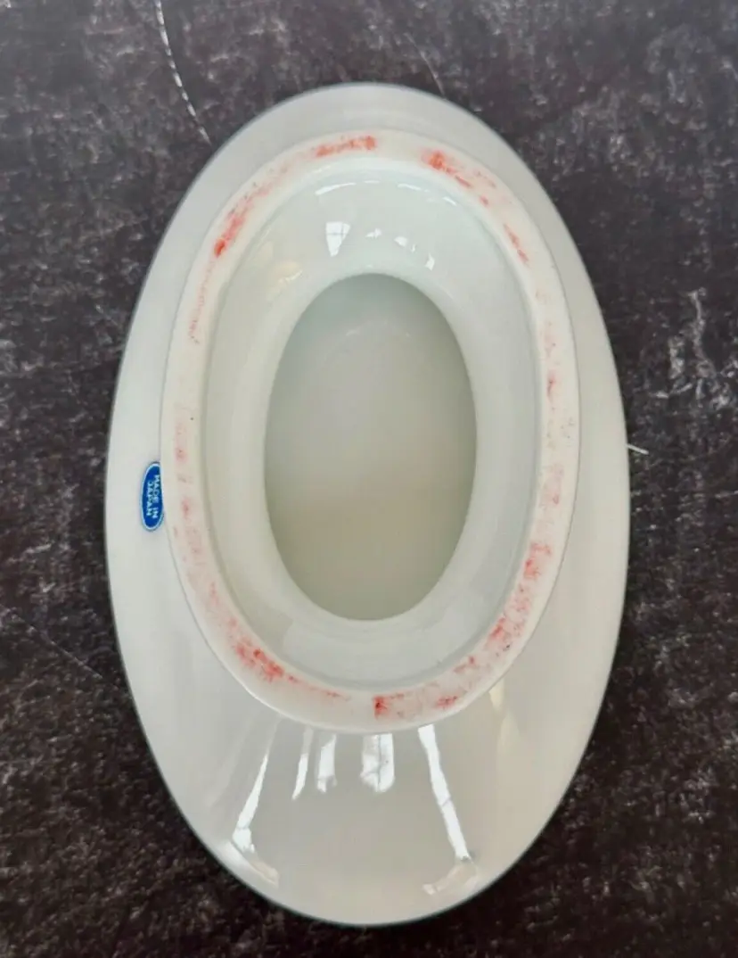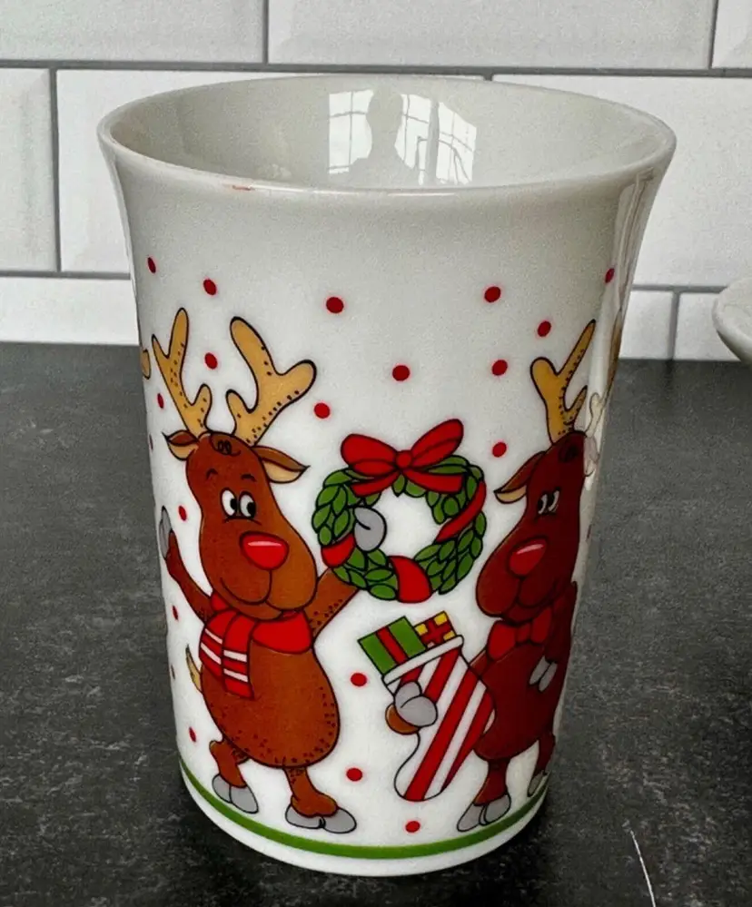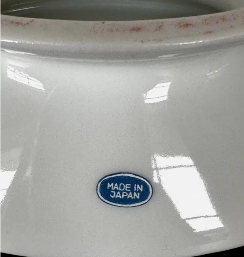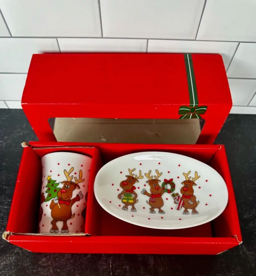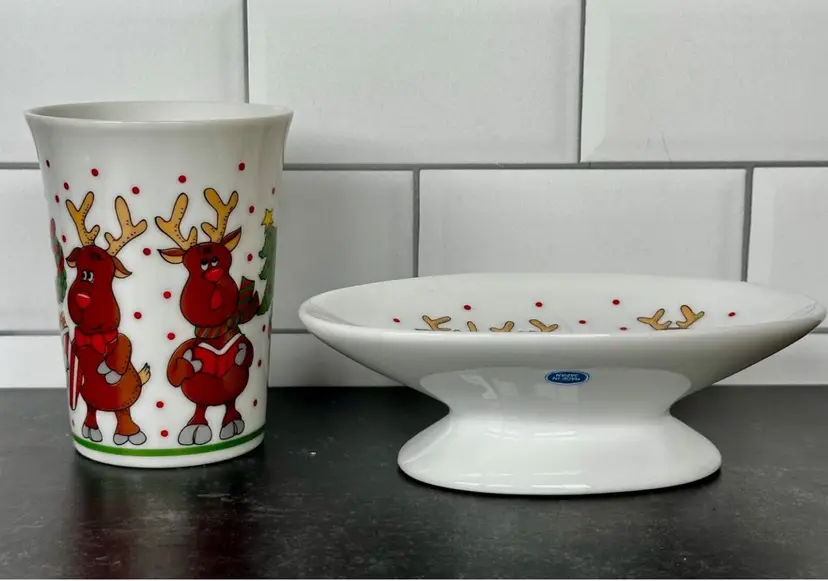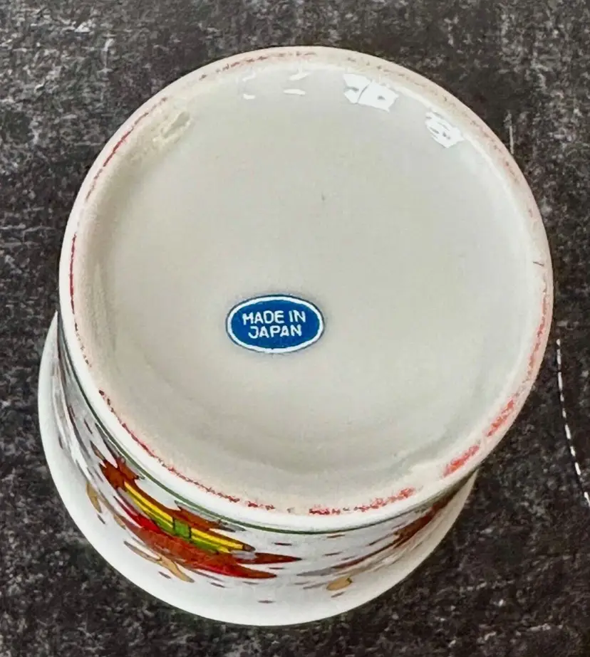Very Good Condition. No chips, cracks or crazing. In original box. Cup: 3 1/2”H x 2 7/8”W / Dish: 1 3/4”H x 5 1/2”W x 3 1/2”D / weighs 1 lb