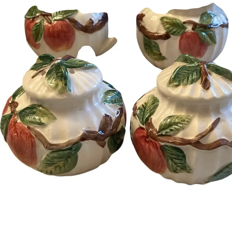 3” tall, 3.5” wide. No cracks or chips. Rate to find the S/P shakers with the cream and sugar.