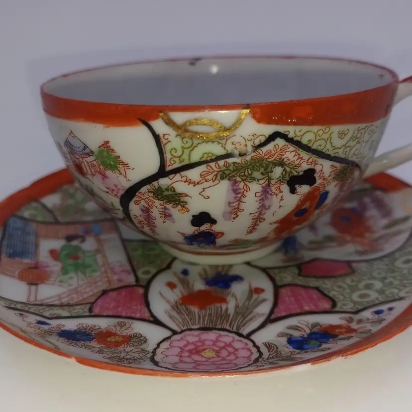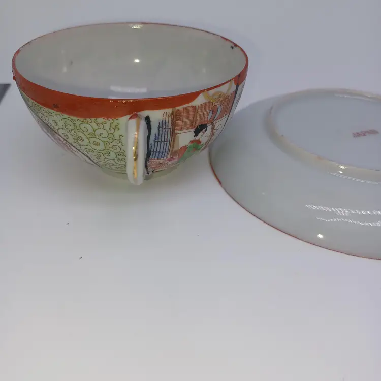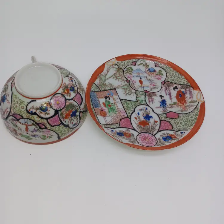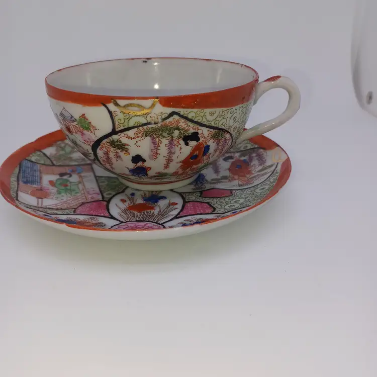 This vintage tea cup and saucer set showcases the beauty of Japanese culture with its stunning Geisha girl design. Crafted from high-quality porcelain, this set is perfect for tea enthusiasts and collectors alike. Its unique Japanese heritage and exquisite craftsmanship make it a must-have addition to any collection. This delicate vintage teacup is in good condition does have a few paint splotches from the hand painting but otherwise in good shape please see all pictures as they're the best description all items from a smoke-free home with pets experienced fragile shipper
