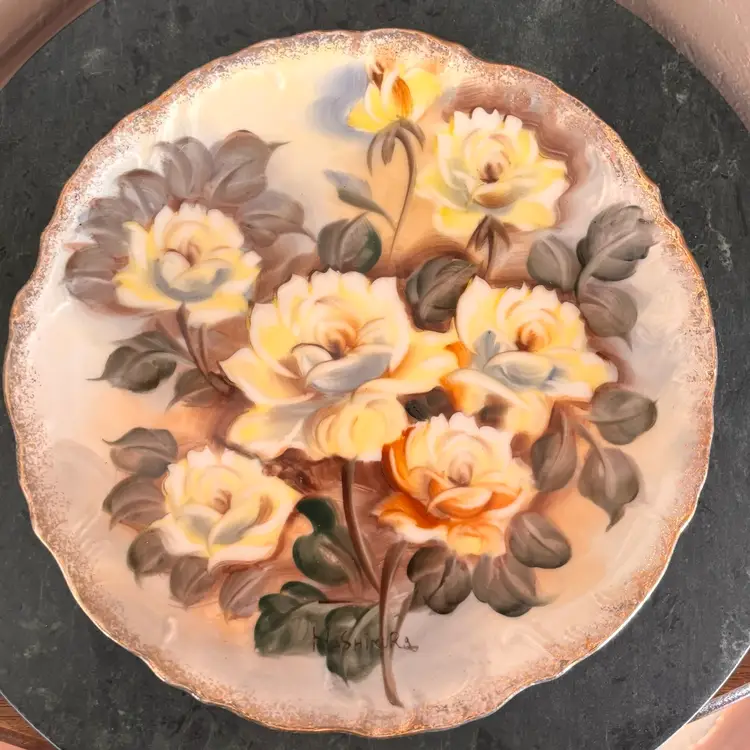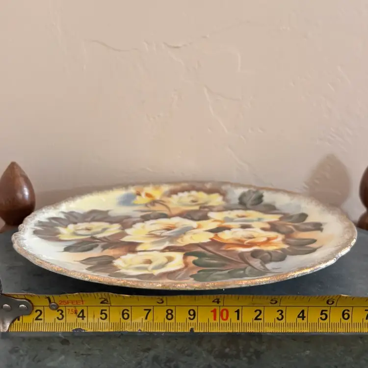 Romantic rose decorative plate just add string to hang 6"diameter Vintage wear as shown- no chips or cracks