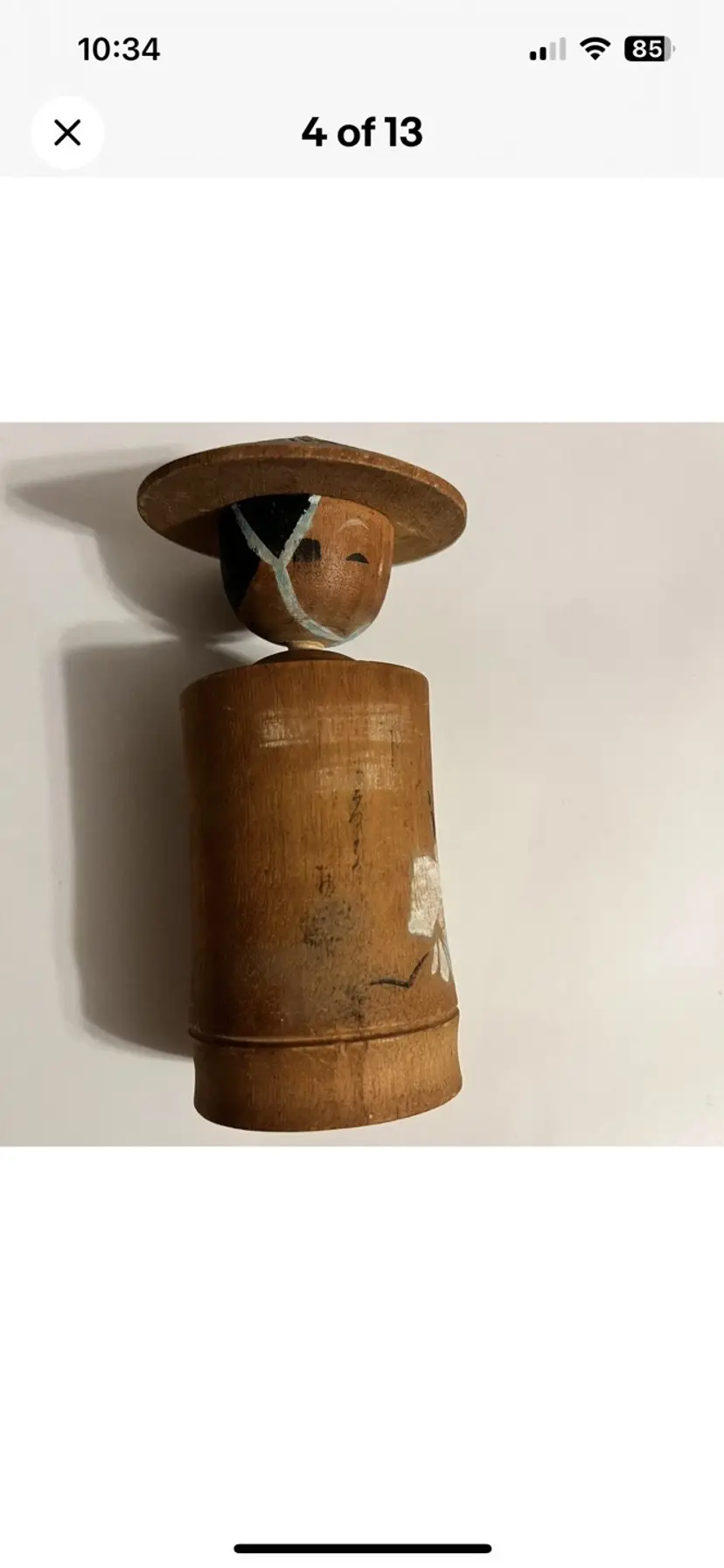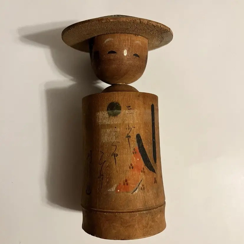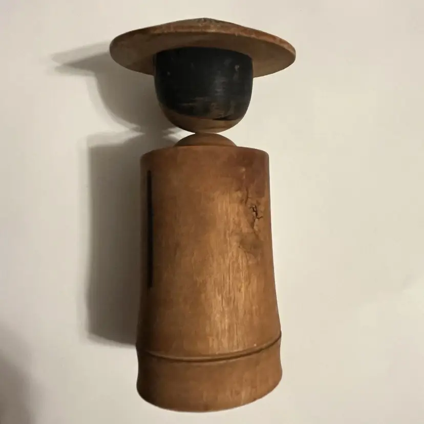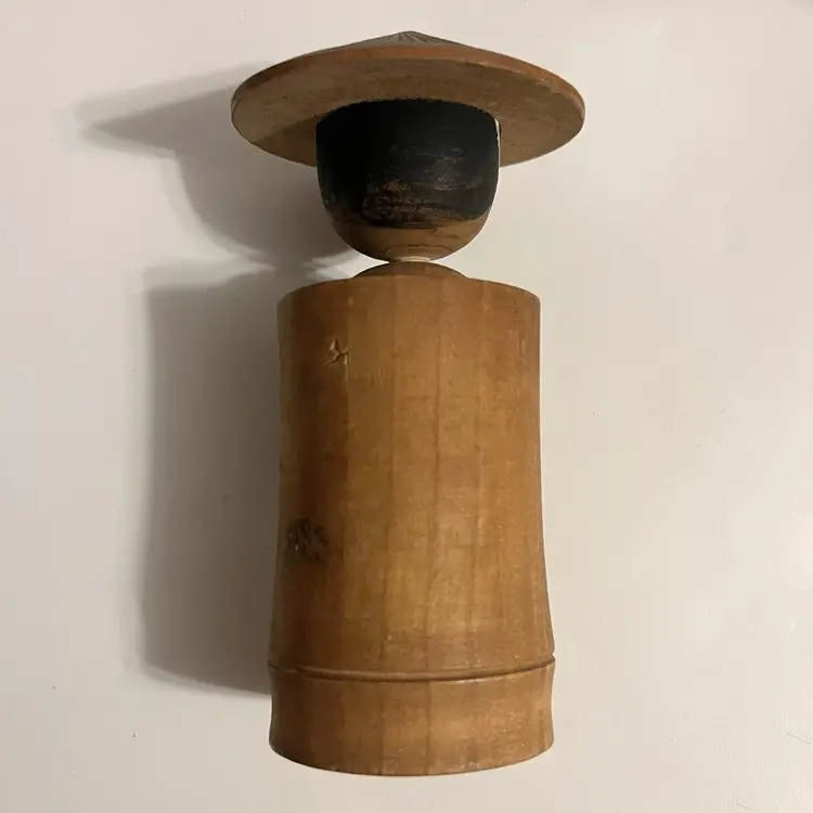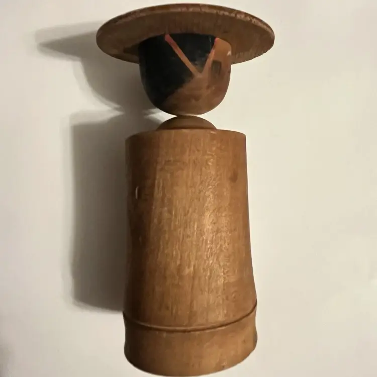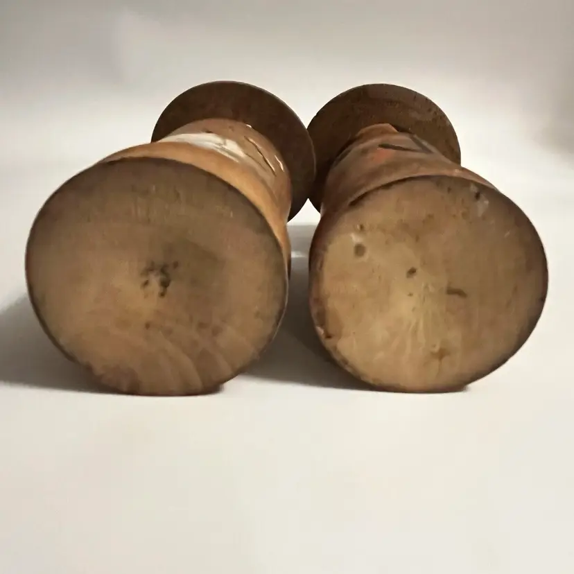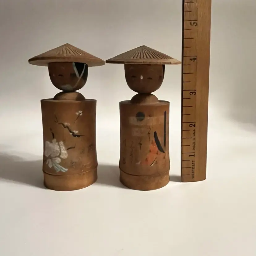 Diameter of body = 2 5/8 inches (6.66 cm) Height = 4 1/2 inches ( 11.43 cm) to top of hat Weight = 2.5 ounces each Condition = Please look at the photos. There is some wear, usual for the age and includes small dings, darkening of wood, fading/wear to paint. Era = Showa 1926-1989