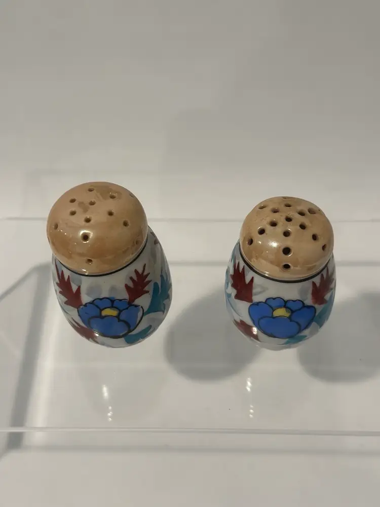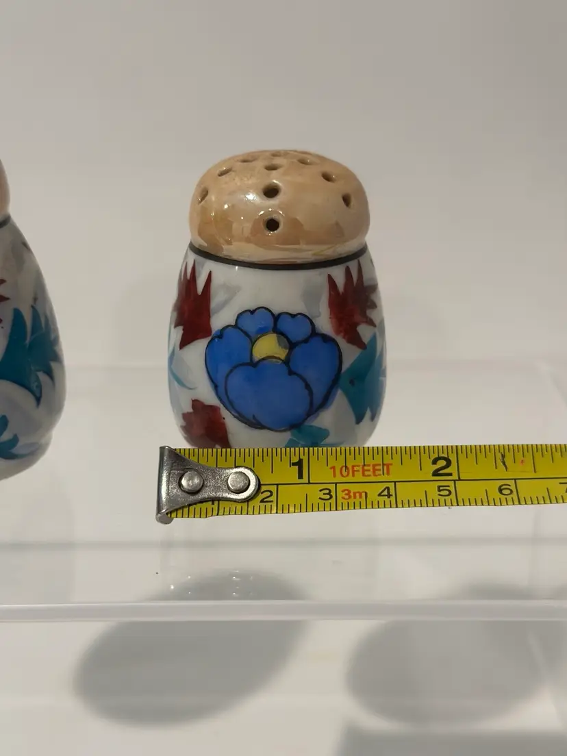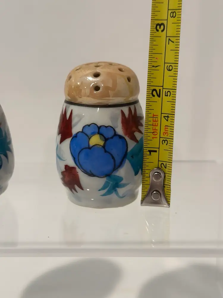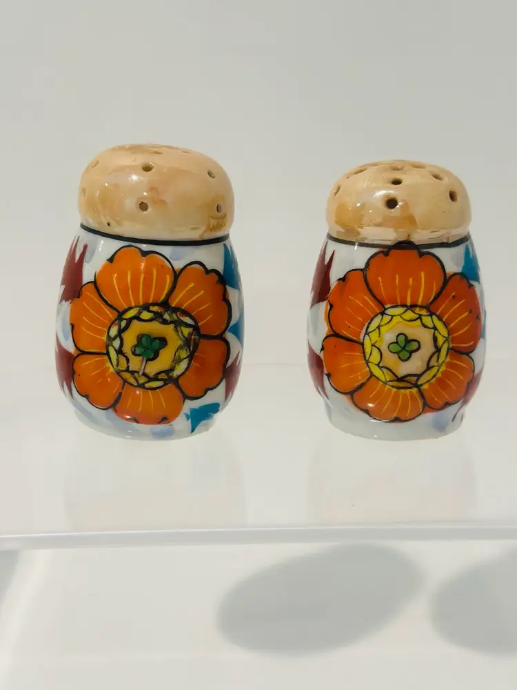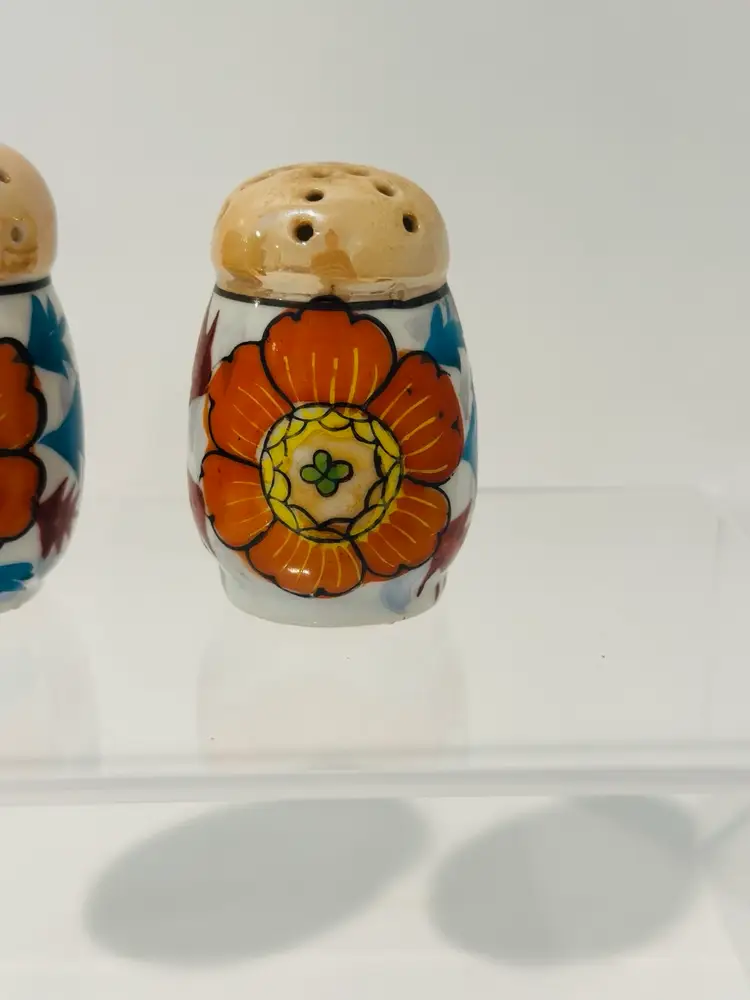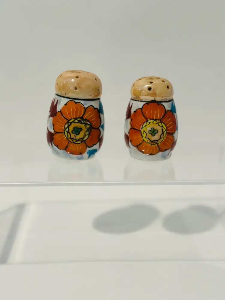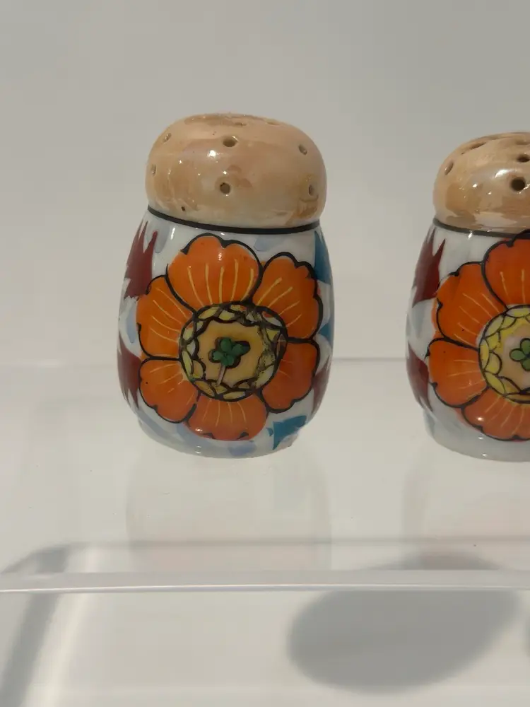 Add a touch of Japanese culture to your home with these vintage Lustre Ware Flower Salt and Pepper Shakers. Expertly crafted in Japan, they boast intricate floral designs that will add elegance to any dining table.