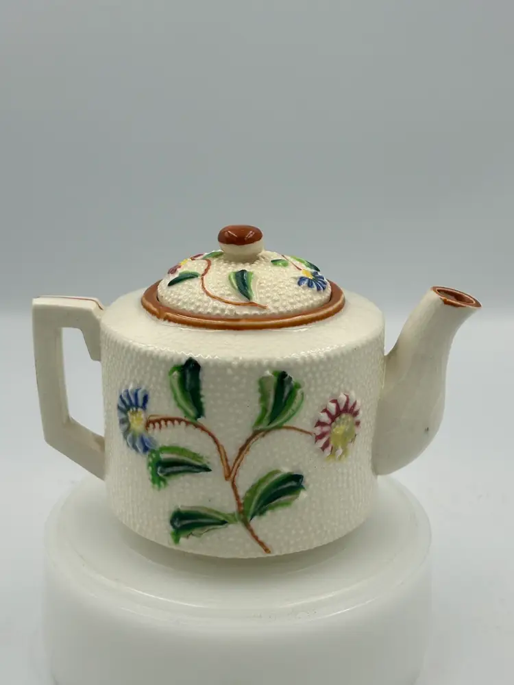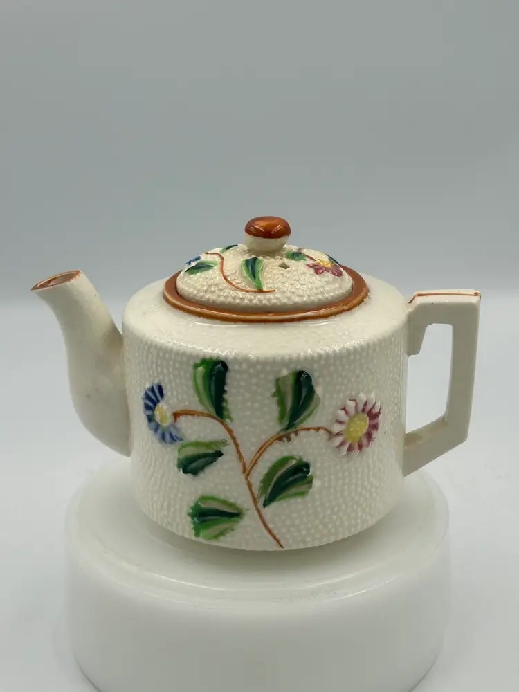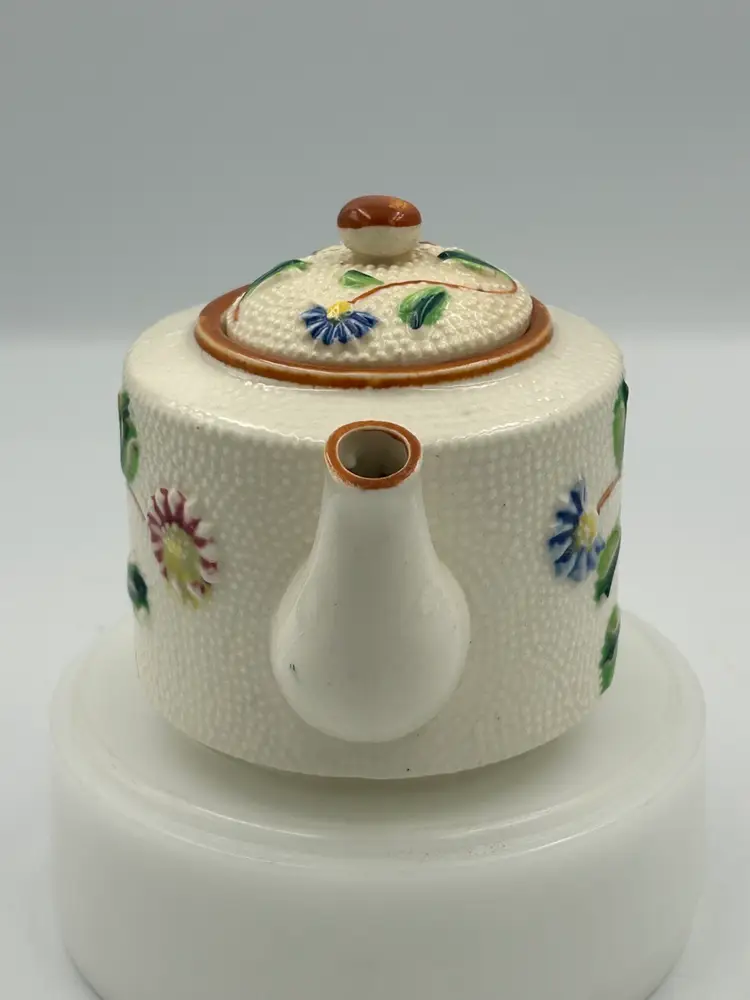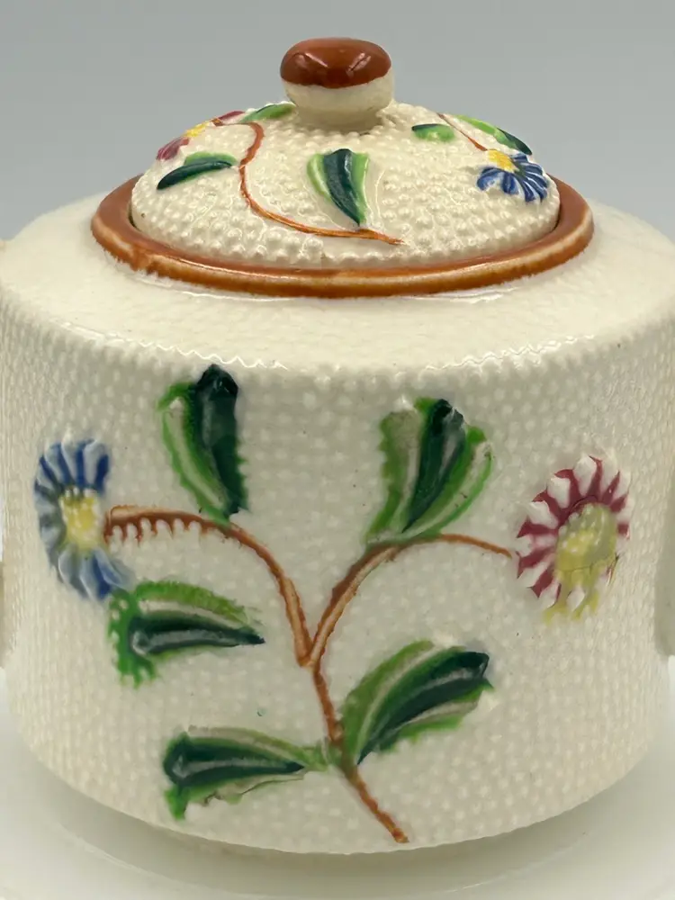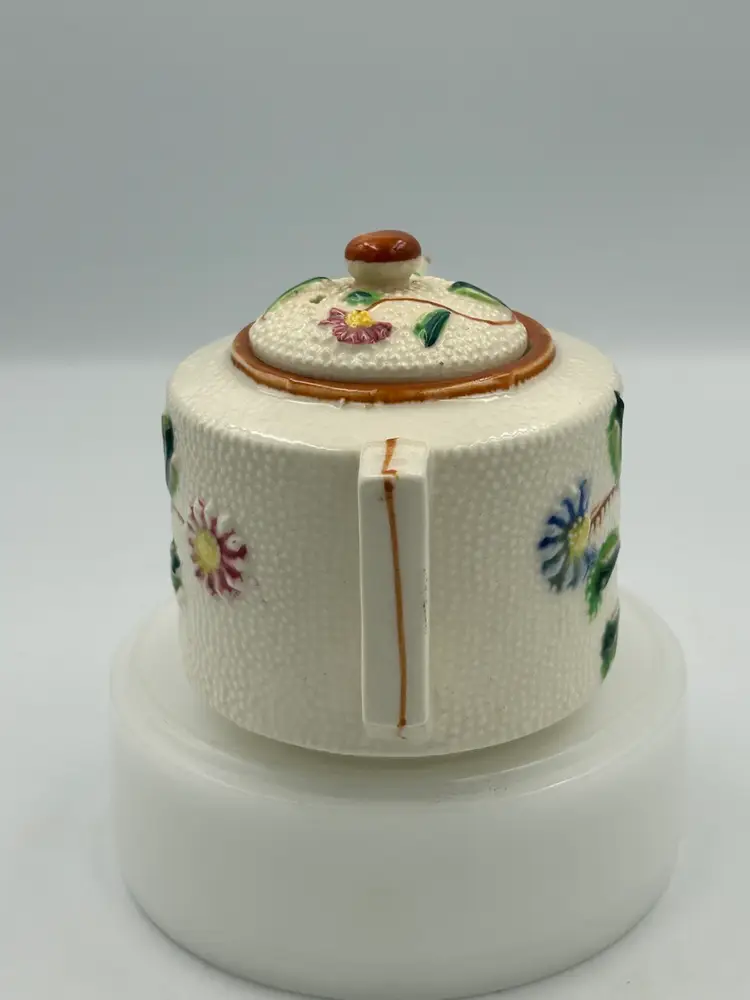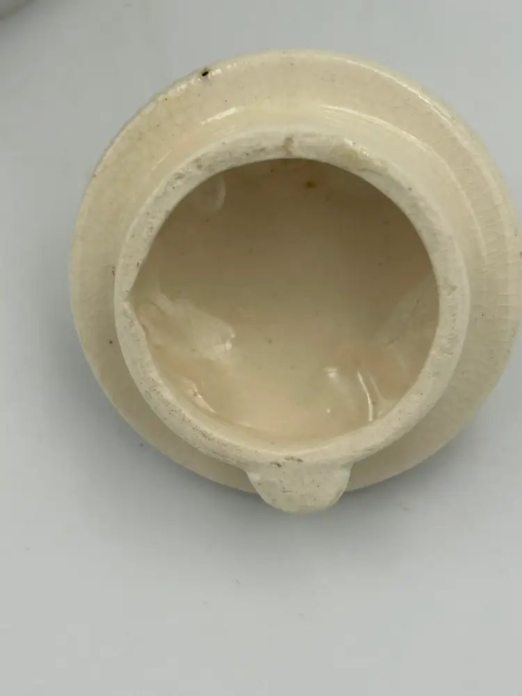 Pot in perfect condition. Tiny chip on inside rim of the lid, see picture. 5.5 L.X 3.5 W.x 3.75 H