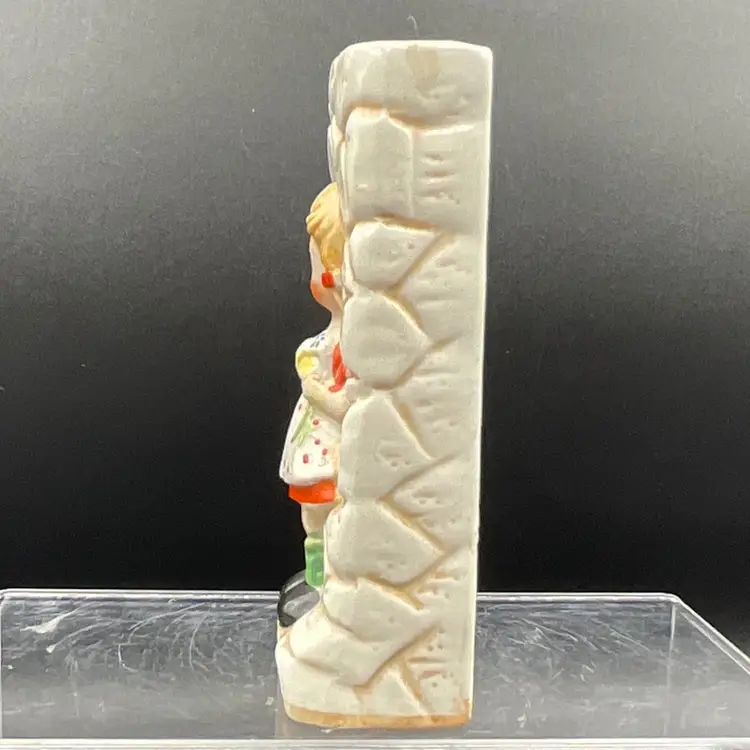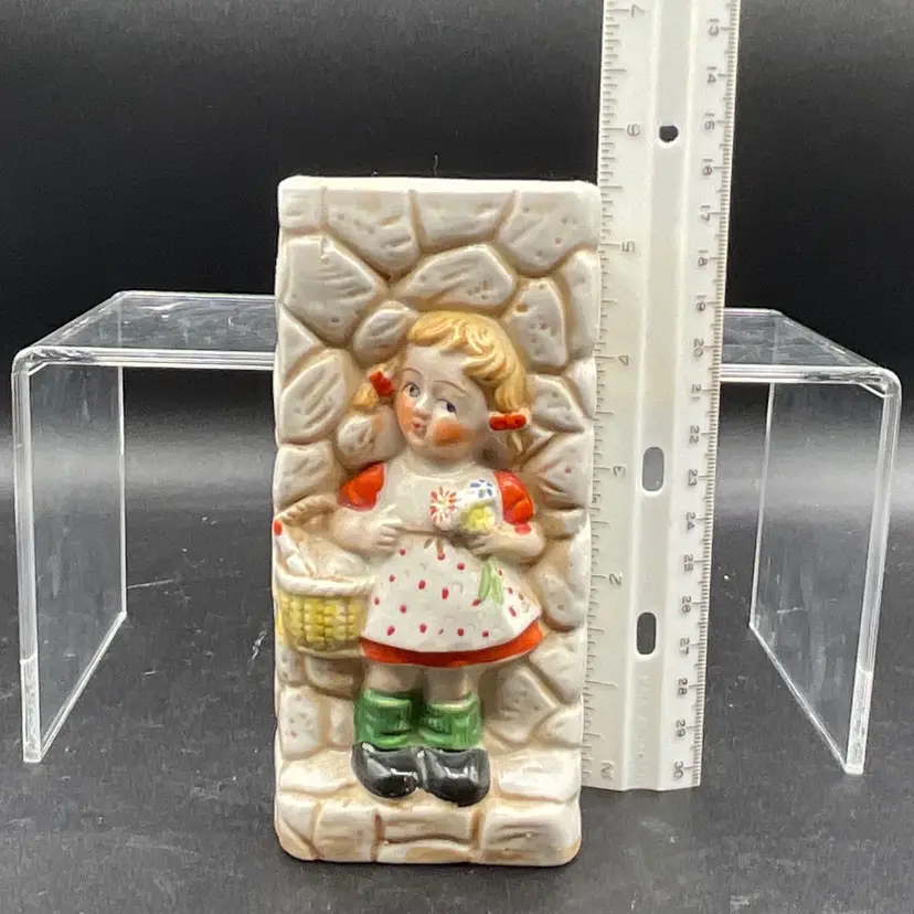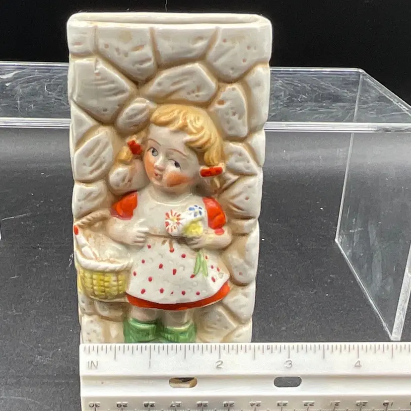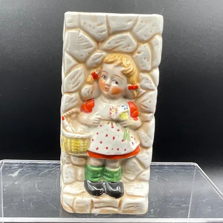 Vintage Japan ceramic Tokanabe style wall pocket little girl with basket slight crazing no chip or cracks