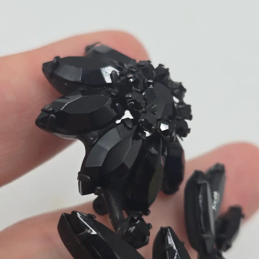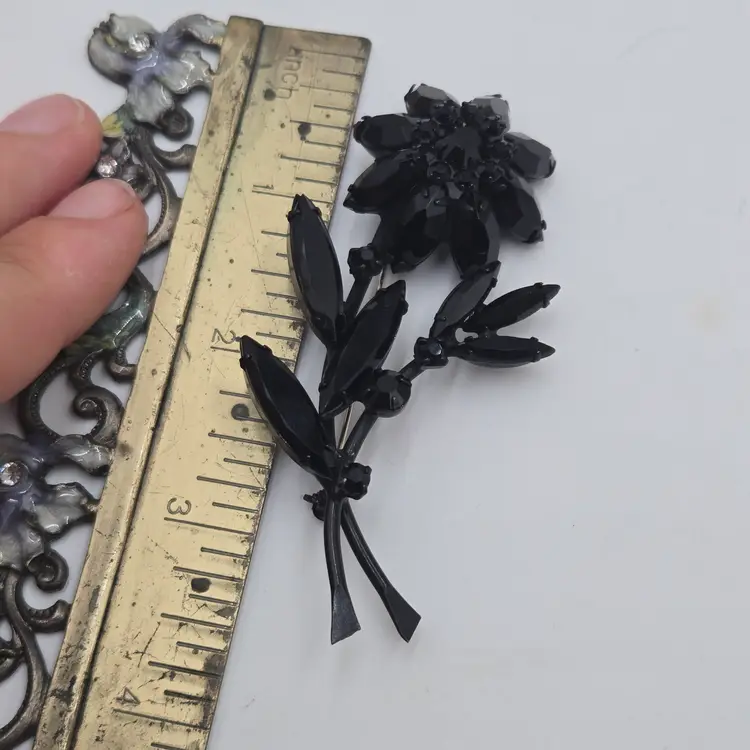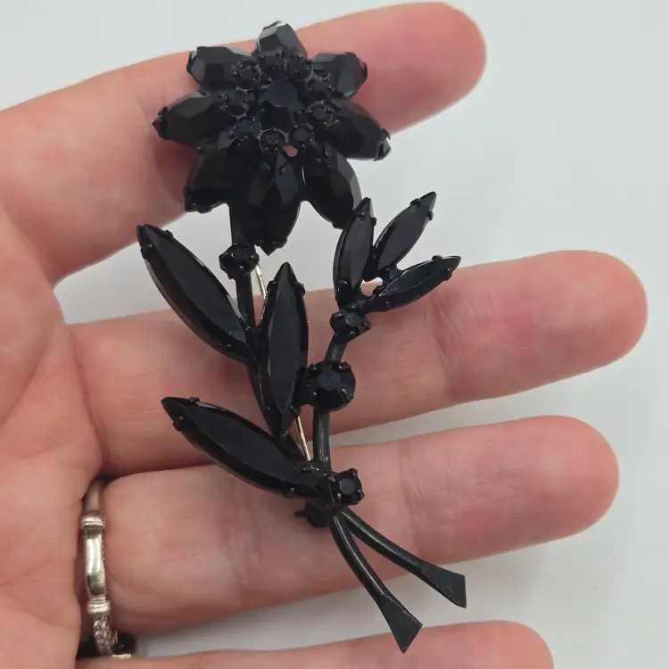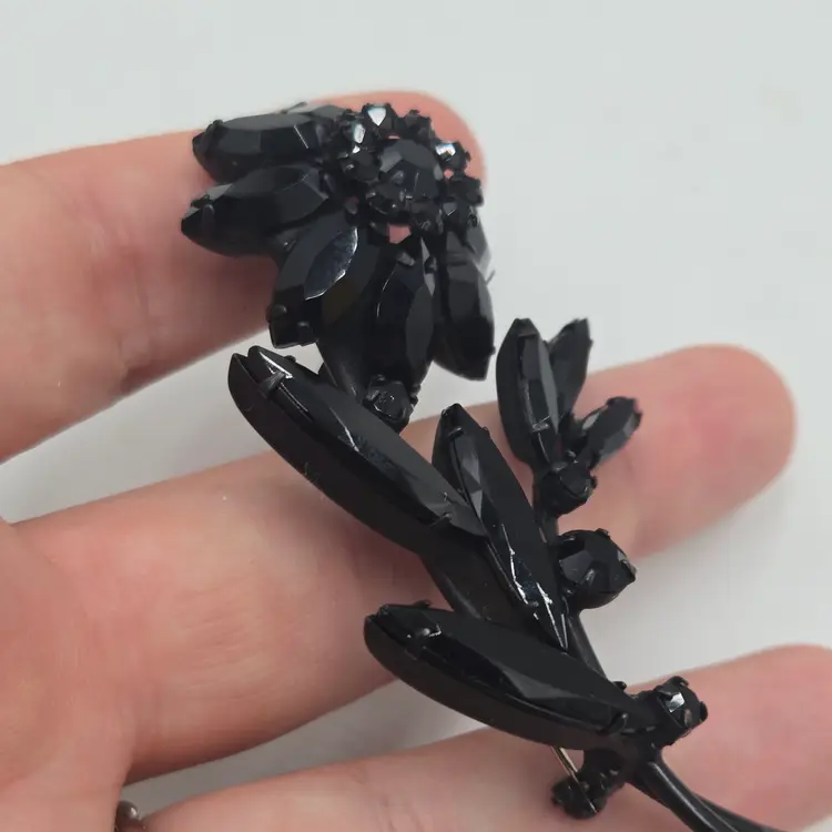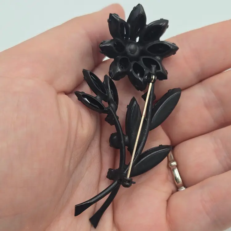Vintage Jappened Black Flower Brooch Pin French Jet Mourning Replica Domed