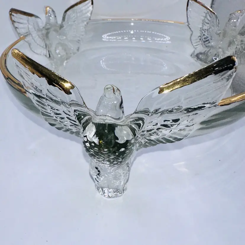 Excellent Condition (Free Of Any Chips, Crack Or Repair) Vintage Jeanette Glass Three Eagle Bird Footed Bowl Candy Dish Gold Trim 7". Mid Century Modern. Some Rub Wear Of Gold Trim On Eagles And Rim From Age/Use. Beautiful Vintage Piece. Smoke Free Home. #jeanetteglass #mcm #vintage #candydish #eaglebowl #retro