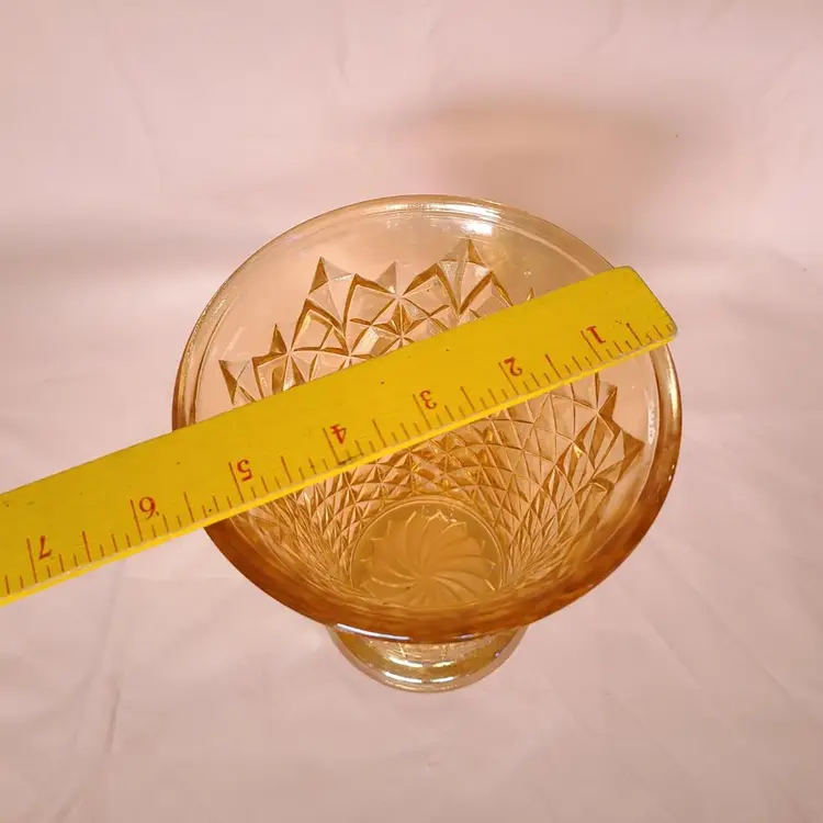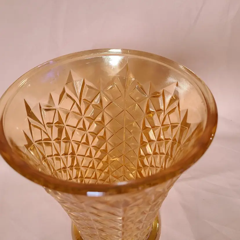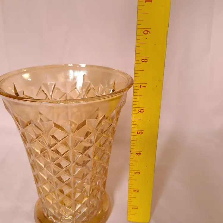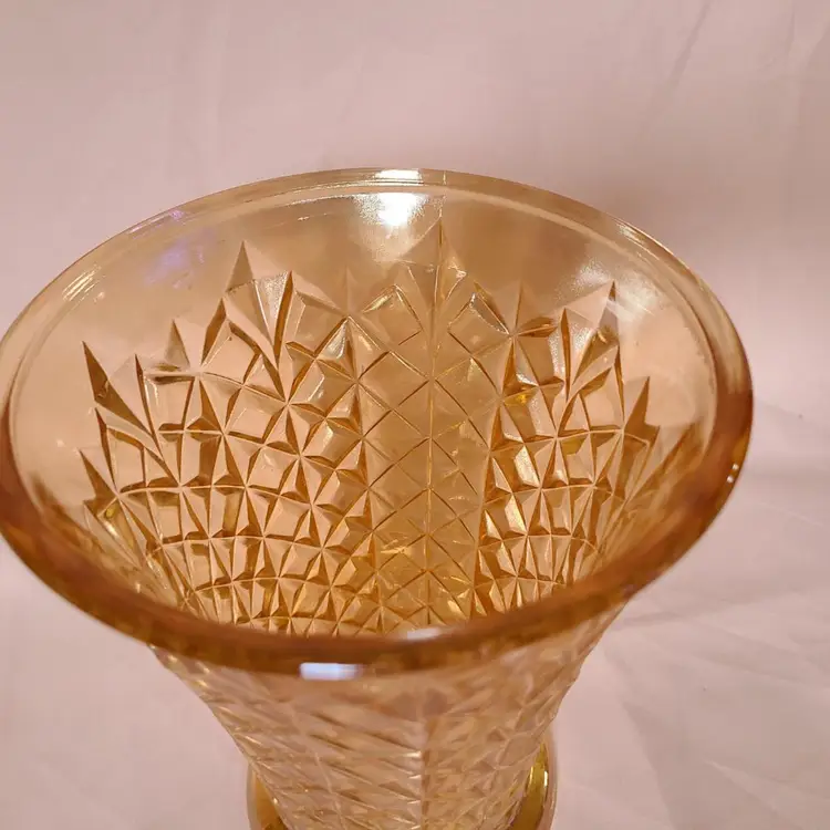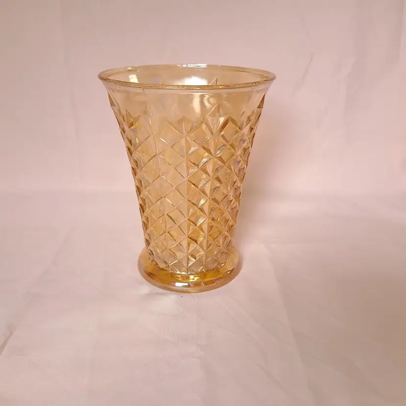 Jeannette Carnival Glass Vase • Diamond/Waffle Pattern • Iridescent Marigold • Measures 7" • In great pre-owned condition