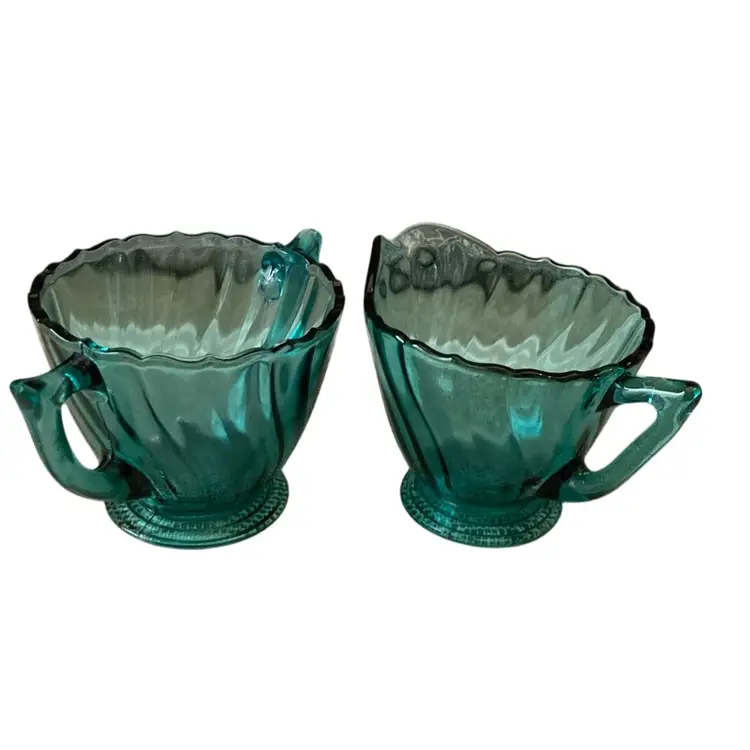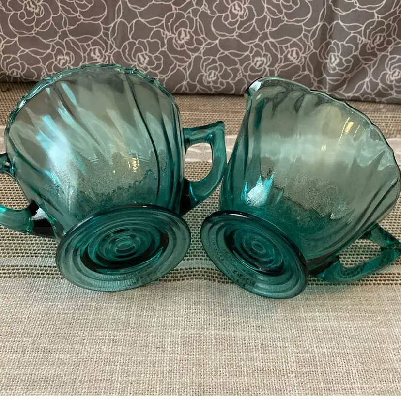 Ultramarine swirl Jeannette glass C & S bowls. 3” tall. No cracks or chips.