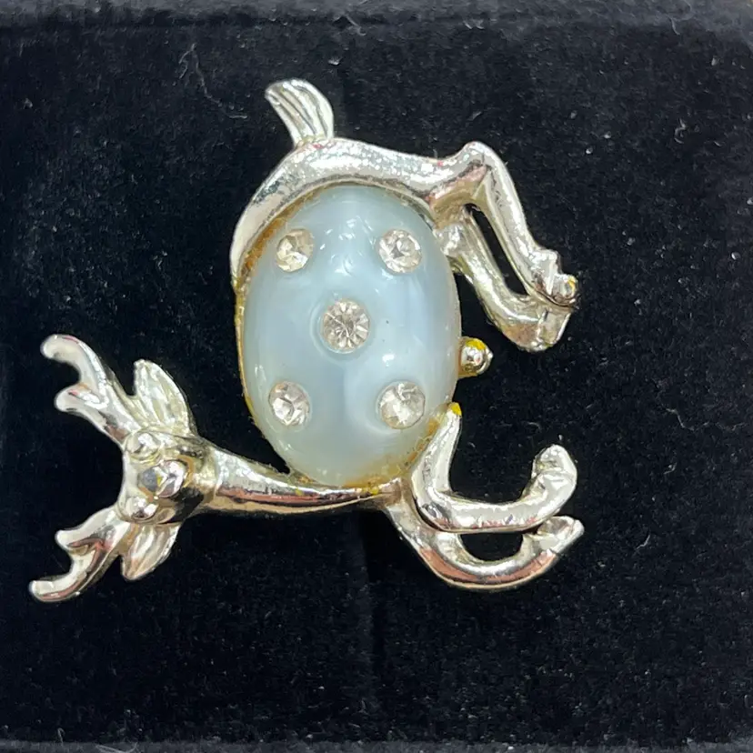 Perfect for adding a touch of whimsy to your outfit, this brooch features a cute deer design that is sure to delight. Whether you're a fan of vintage jewelry or just looking for a unique piece that will stand out from the crowd, this Jelly Belly Lucite Deer Brooch Pin is the perfect choice.