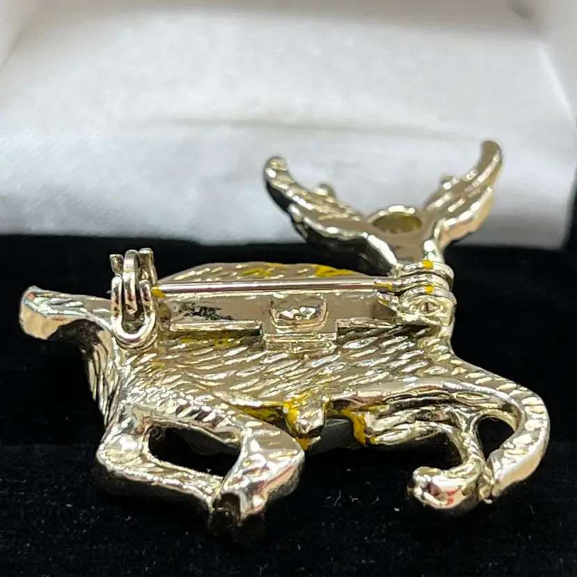 Add a touch of vintage charm to your jewelry collection with this Jelly Belly Lucite Deer Brooch Pin. The gold tone finish gives it an elegant look, while the rhinestones add a sparkle that's sure to catch the eye. Made from high-quality lucite, this brooch is a durable and timeless piece that will be sure to please any collector.