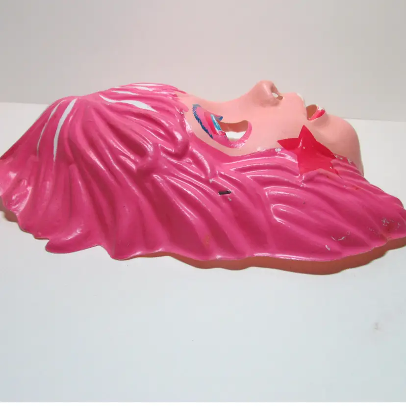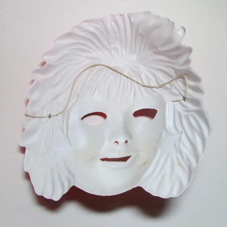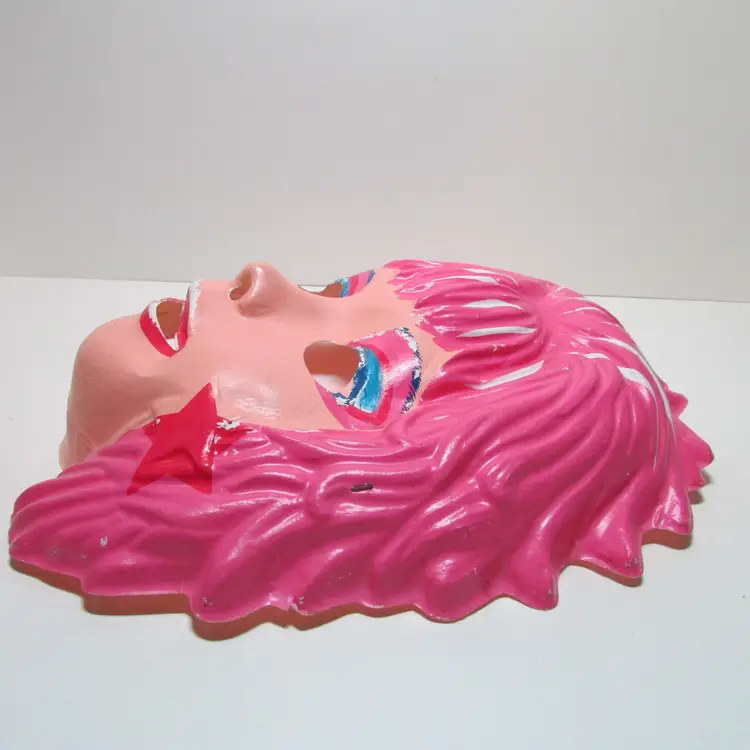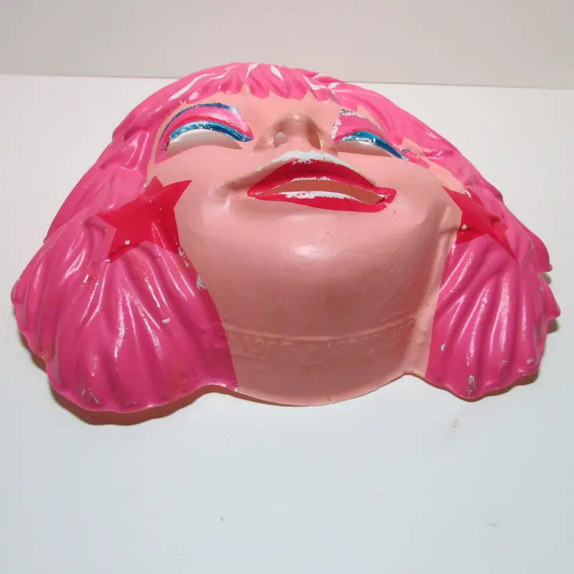 This adorable vintage costume has some damage and wear. The costume has a small rip on the back and the seam is ripping on the sleeve. The mask has some paint loss and a few small cracks on the sides. Still a fun piece to use as display or great for some vintage Halloween pictures. This is shipped from a smoke free home. Thanks for looking! locub-a