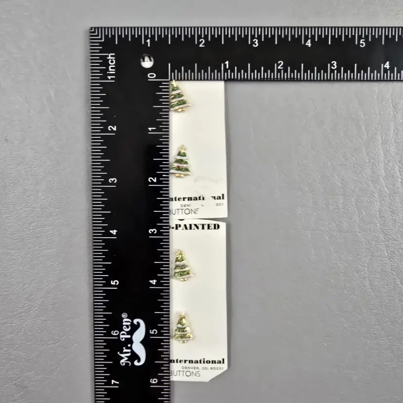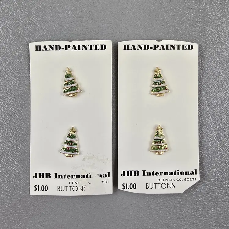 Vintage JHB International Christmas Tree 1/2 Inch Buttons (4) On 2 Cards Shank USA Hand-Painted