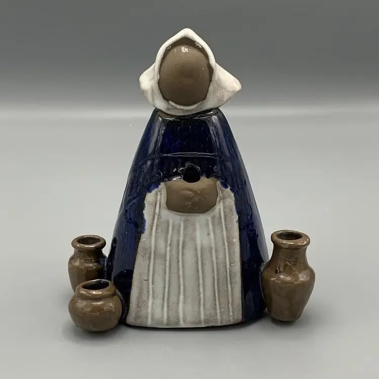 Vintage Swedish Blue Ceramic Woman Figurine JIE Sweden -etched on the bottom Clay/Pottery Swedish Folk Art Dry Flower Vase/Figurine Scandinavian Decor