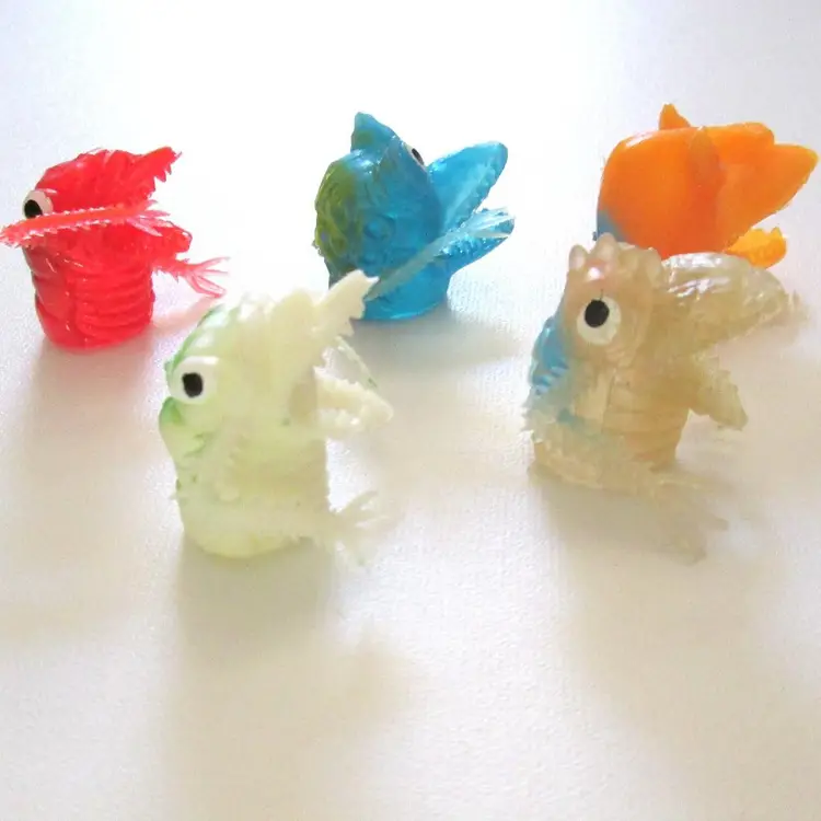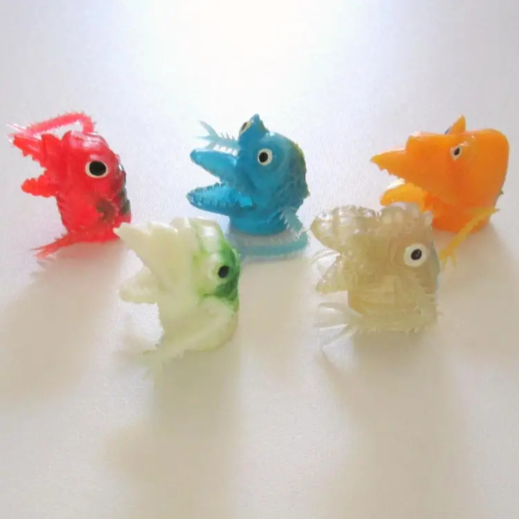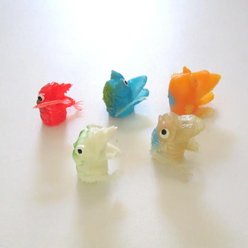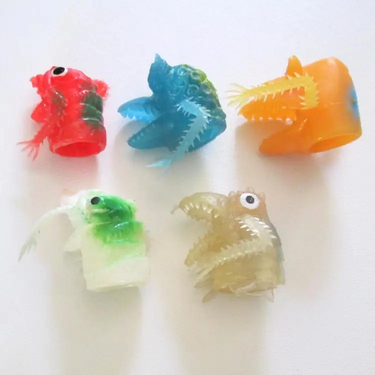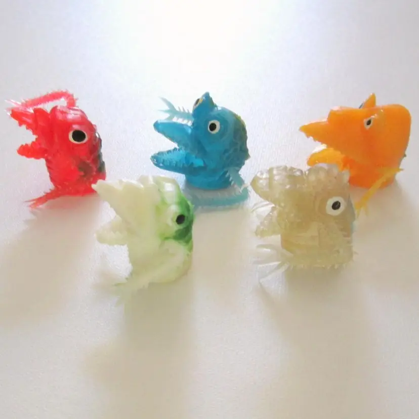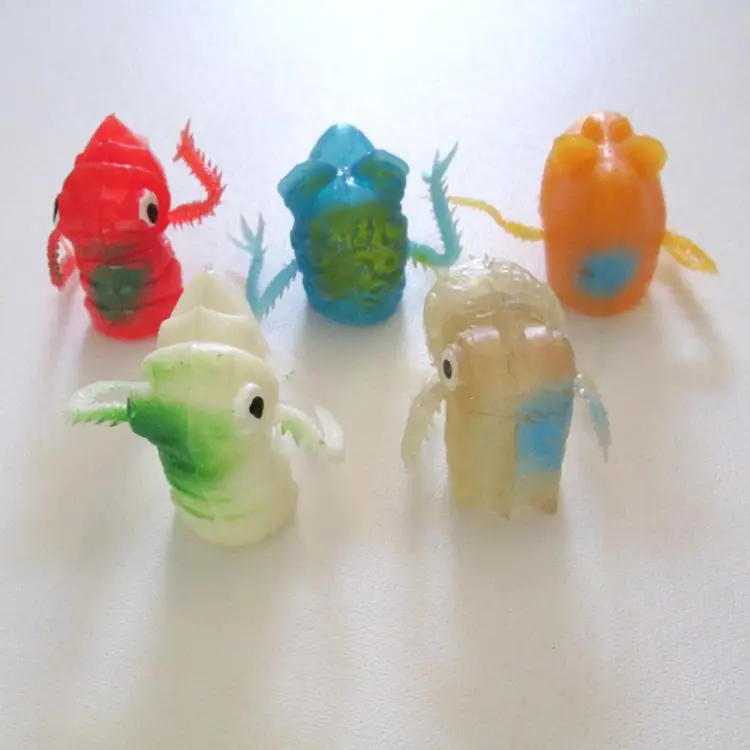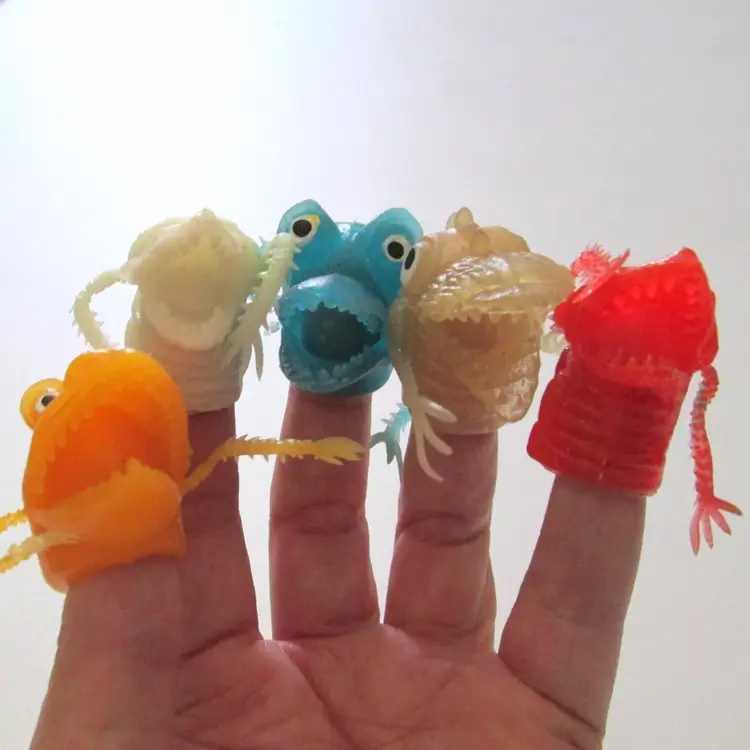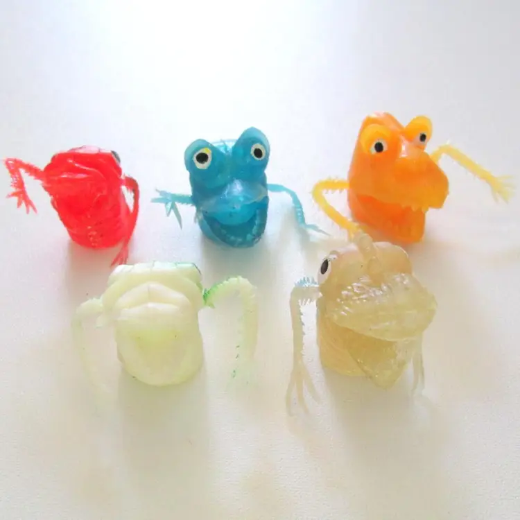 Vintage Jigglers Monster Finger Puppet Lot 5 Rubber Toys Red Blue White Clear