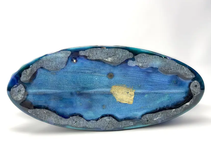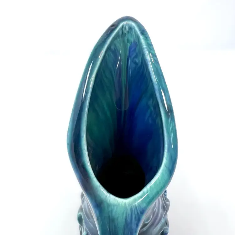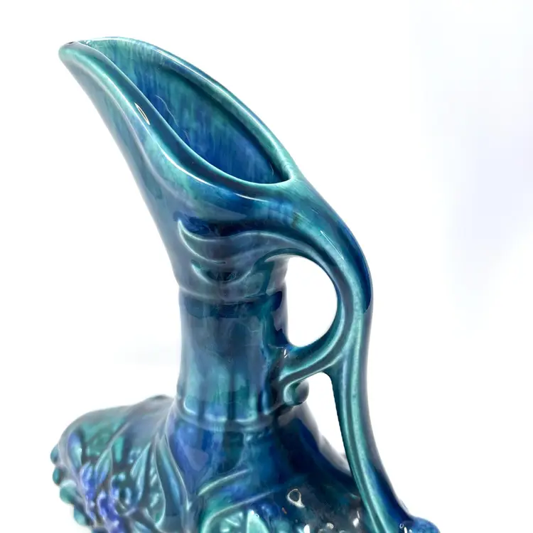 DETAILS: • Dimensions: Height: 9.5", Width: 3", Length: 8.5", Weight: 1lb, 10oz • Manufacturer: Regal China / Jim Beam • Design: Decanter • Pattern: 156 months Old Bot. 1962 • Markings: None (remnant of tag on bottom) • Place of Origin: Beam, Kentucky • Date of Manufacture: c1962 • Materials: Ceramic • Color(s): Indigo Blue & Turquoise • Status: Discontinued