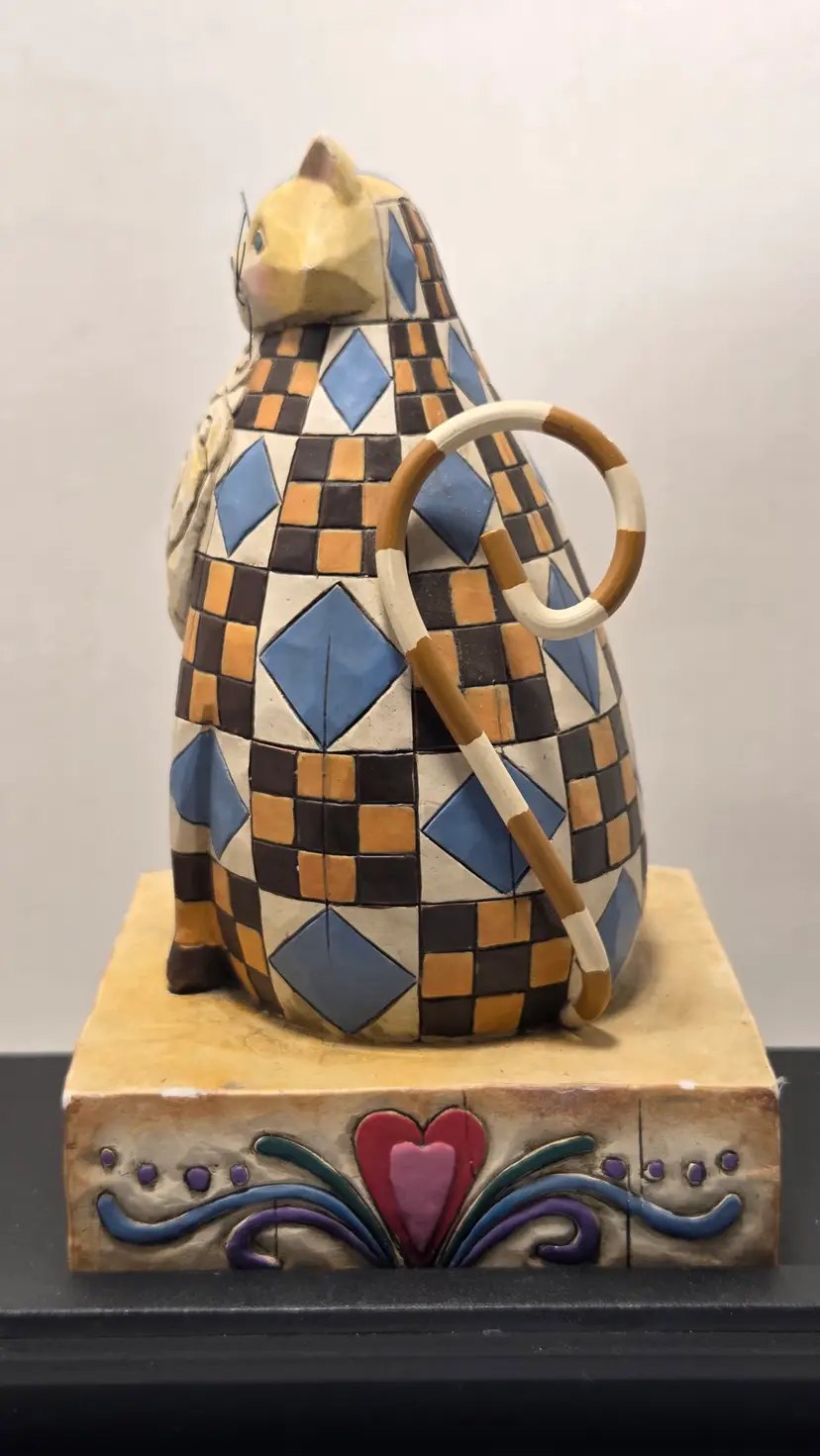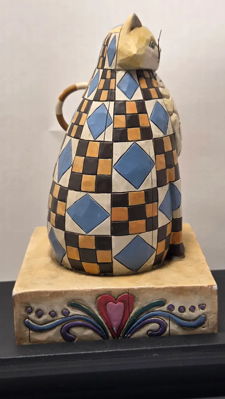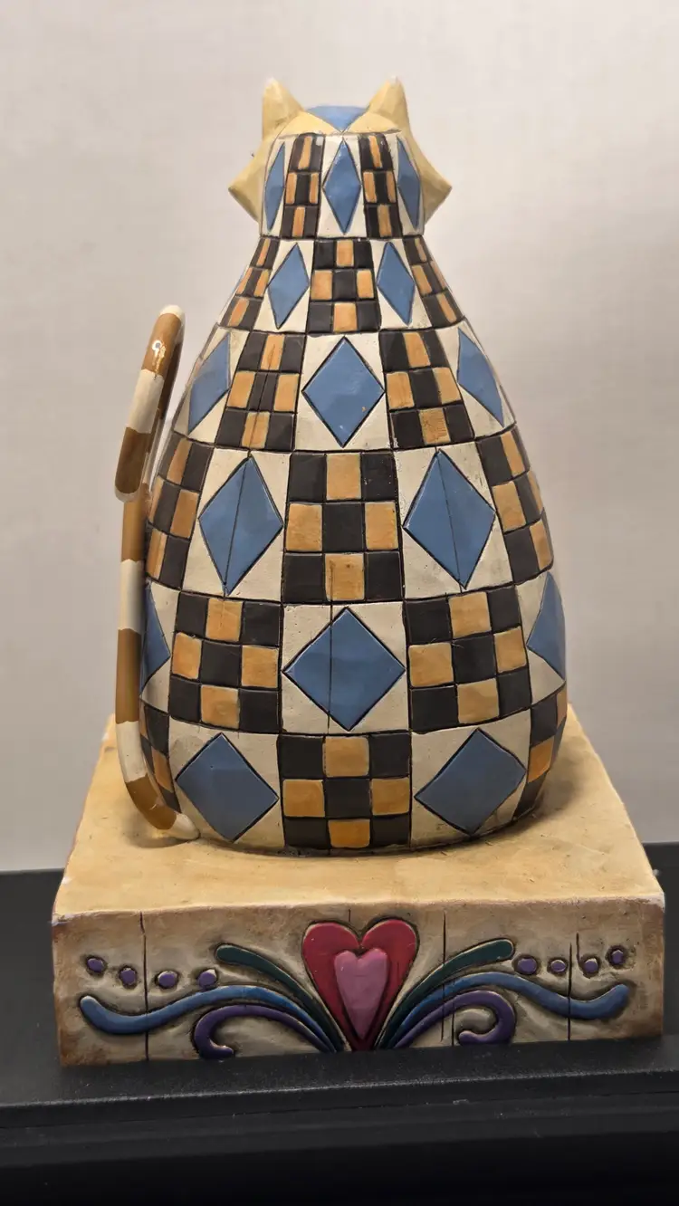 No chips, does have a couple spots of paint loss. Abigail Jim shore cat blue quilt pattern D1
