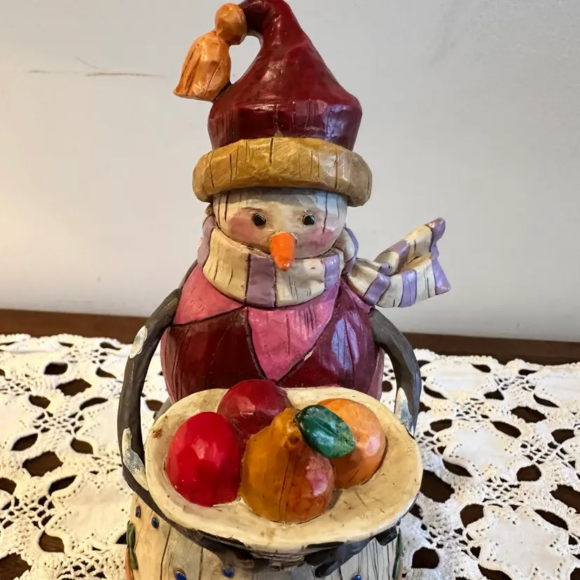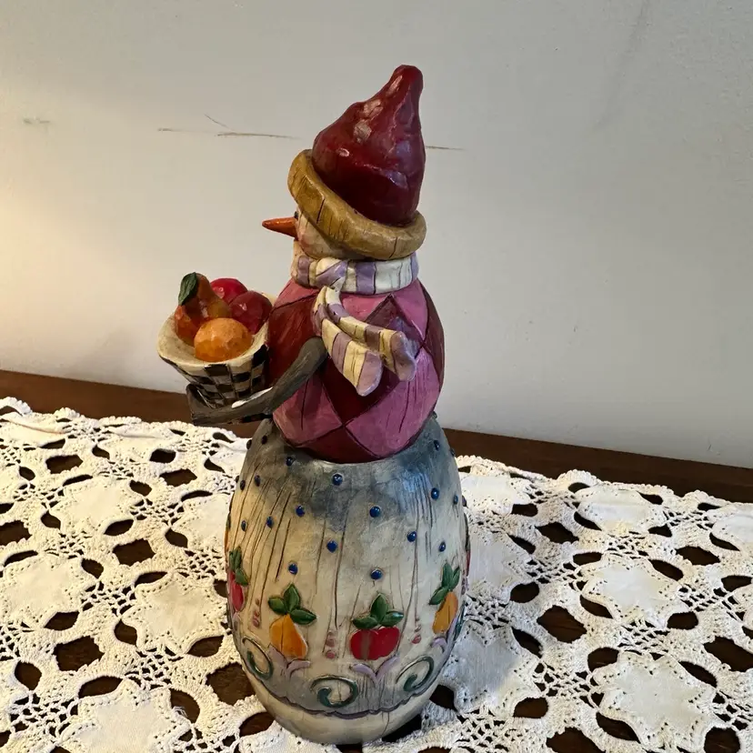 Vintage Jim Shore "Winter's Bounty" Snowman Fruit Bowl Figurine from 2003.