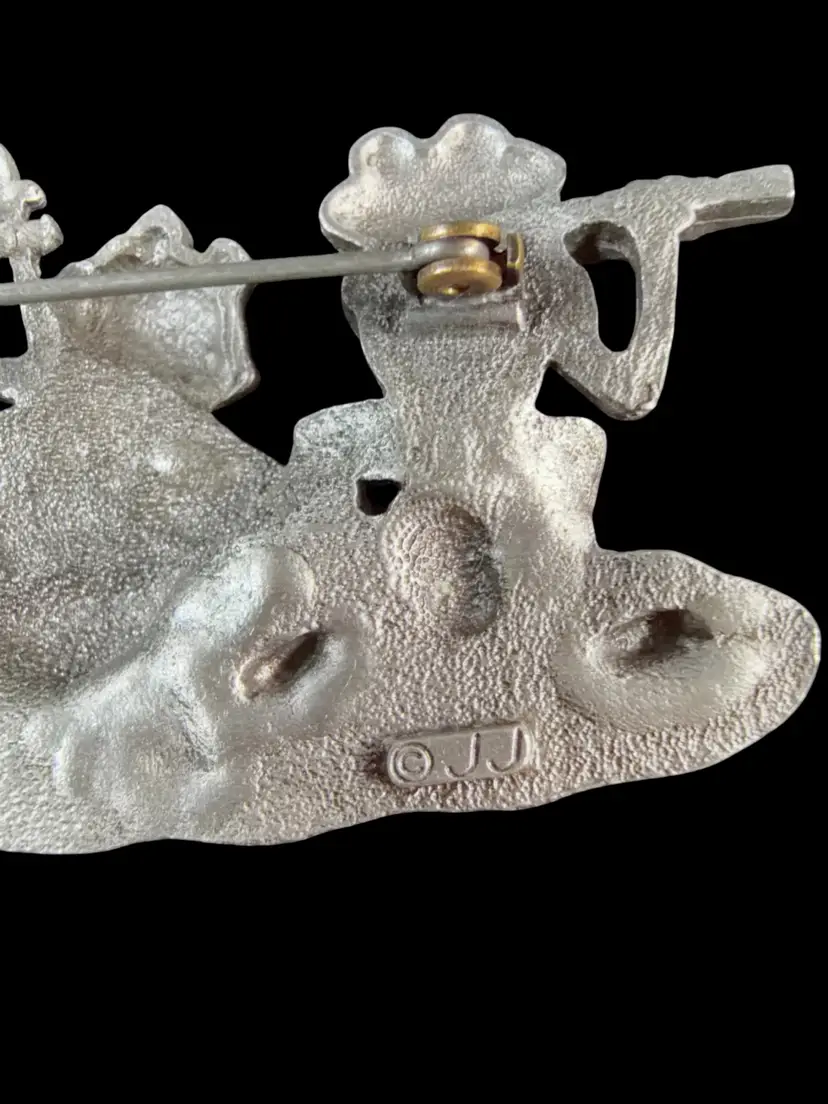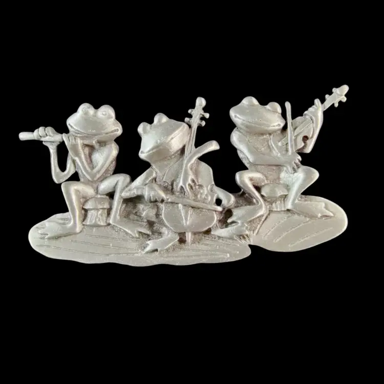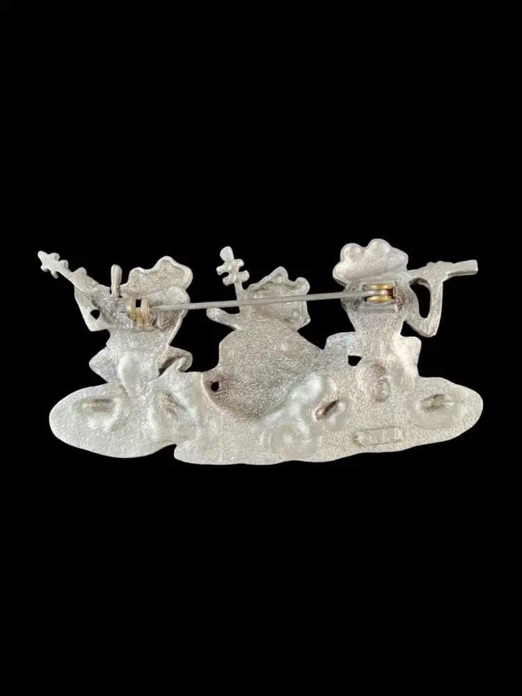 Vintage JJ’s Pewter Frog Band Brooch 2.75”