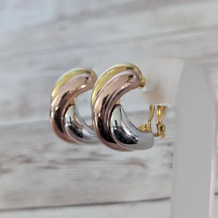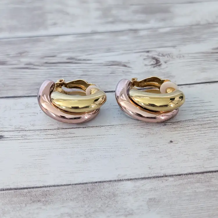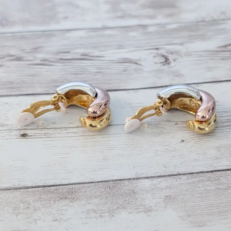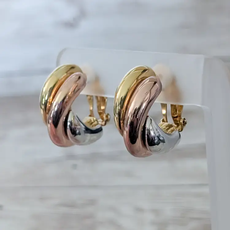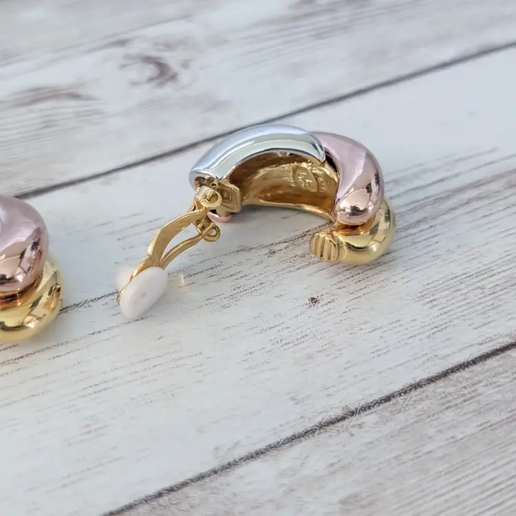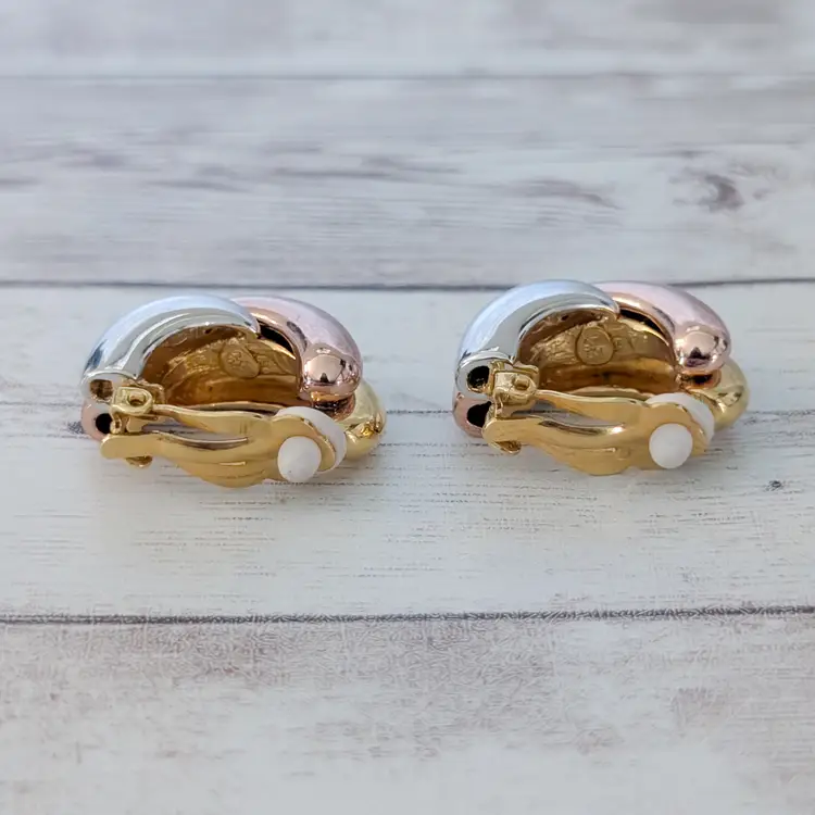 Vintage Joan Rivers Clip On Earrings Tri Color Very Large Chunky Hoops Statement