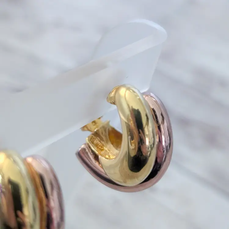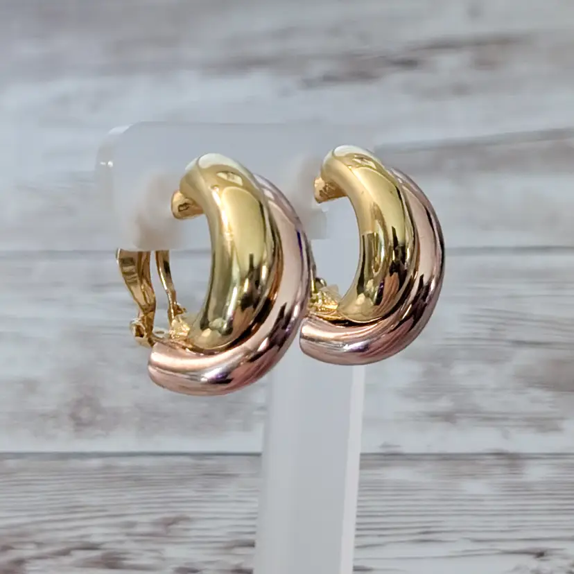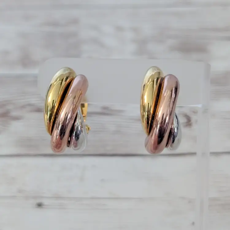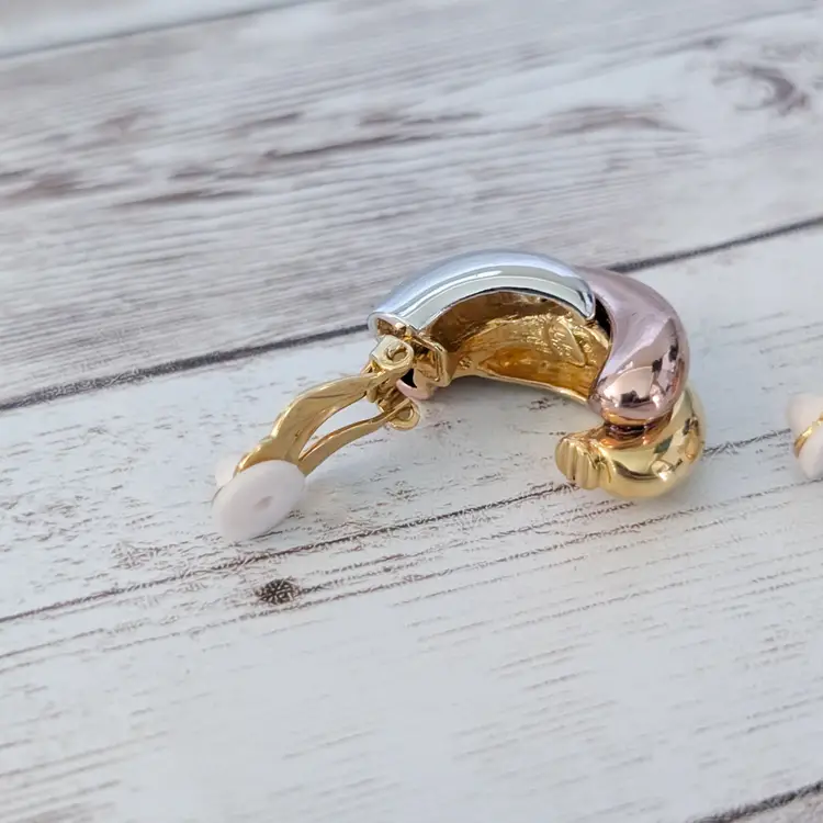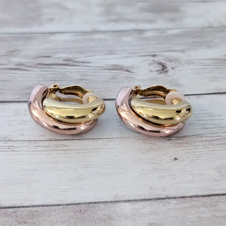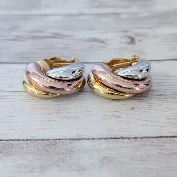 Vintage Joan Rivers Clip On Earrings Tri Color Very Large Chunky Hoops Statement