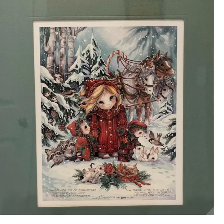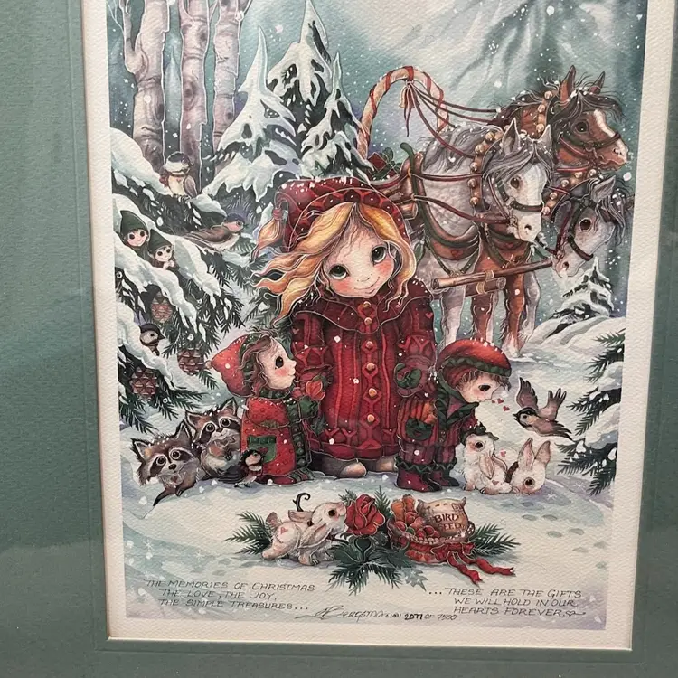 Vintage Jody Bergsma Print / Christmas / “The Memories Of Christmas” - Numbered & Signed. Matted and sealed / Not Framed Condition: Vintage - Never used still in plastic wrap / sealed. Excellent Condition.