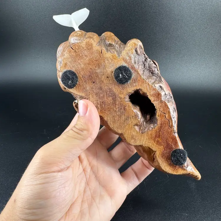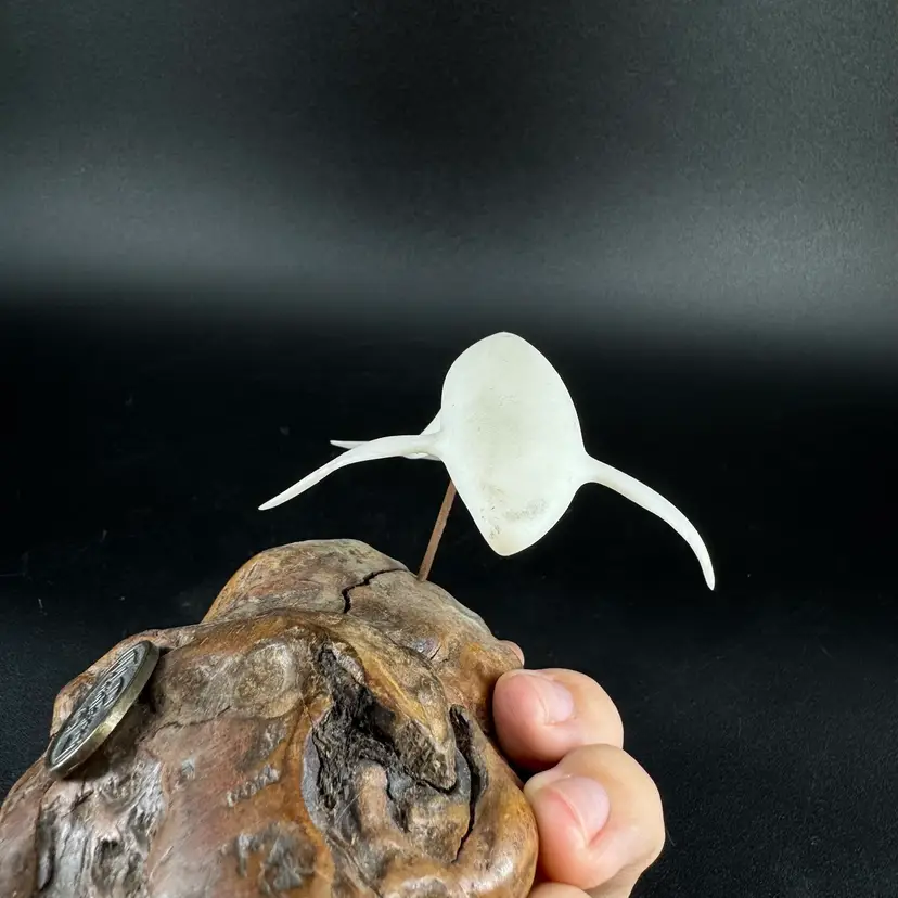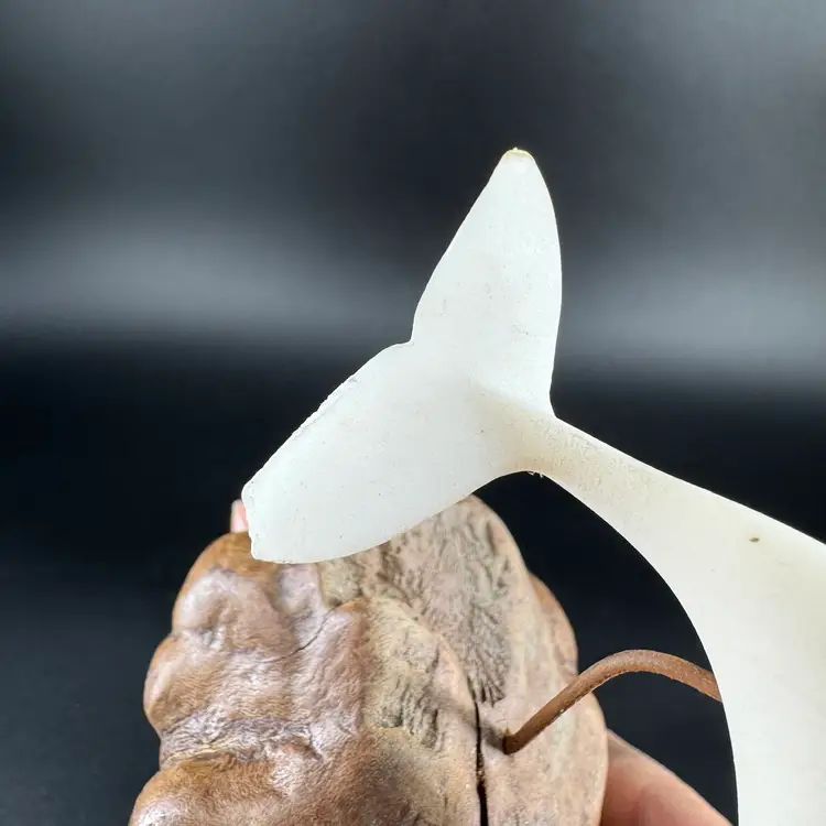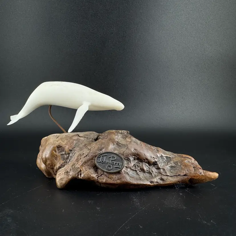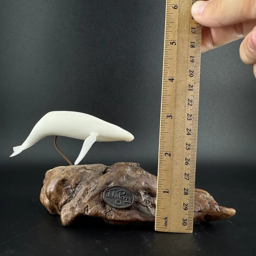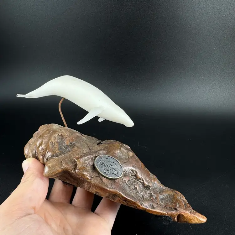Height is approximately 3” Has a chip on the tail Is marked John Perry