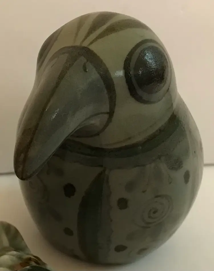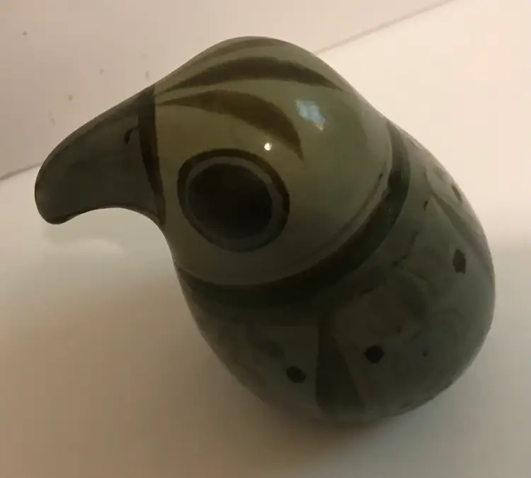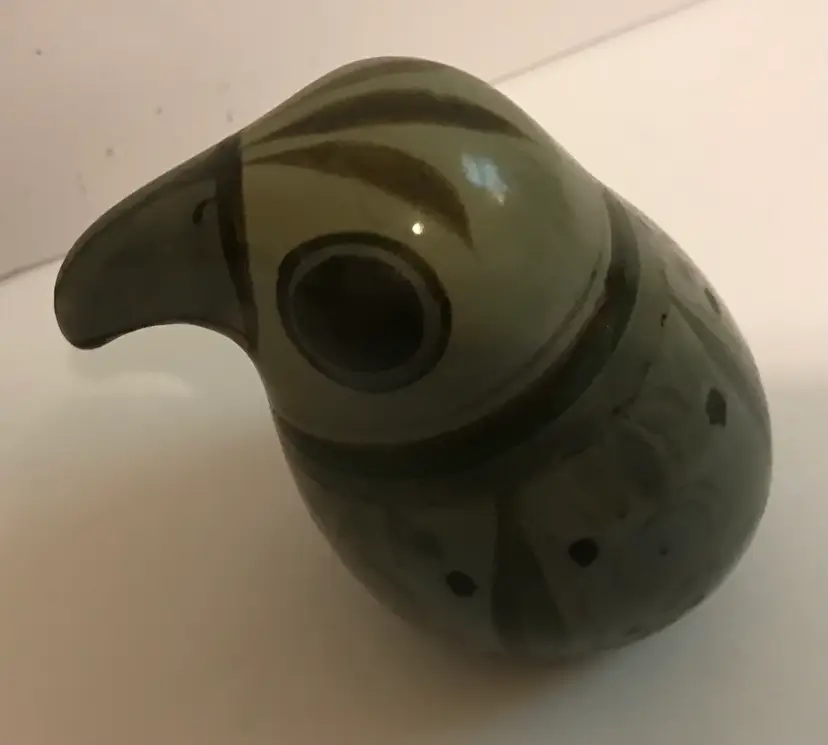 Crafted in Mexico by renowned artist Jorge Wilmot and signed with a "W", this piece features a gorgeous bird design in the traditional Tonala style. Handmade with care about 4” tall