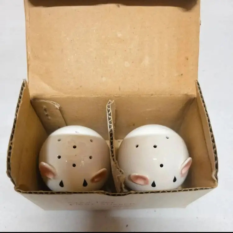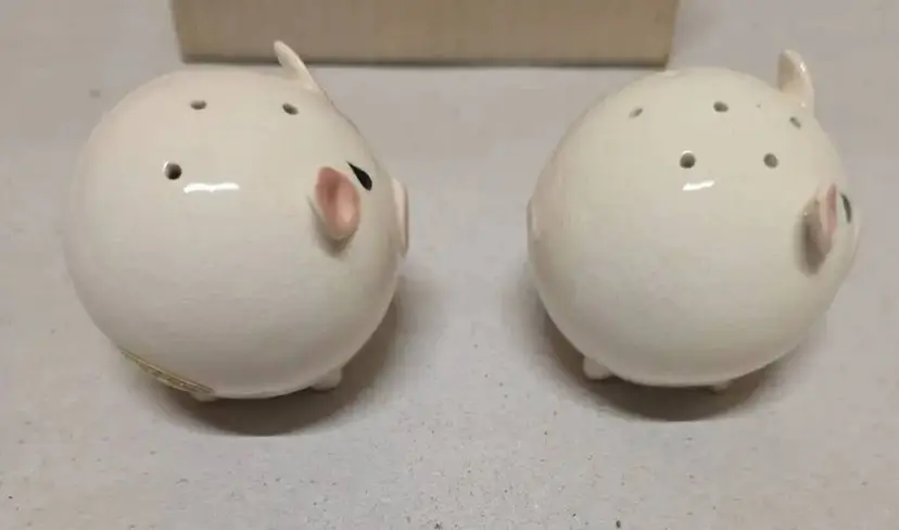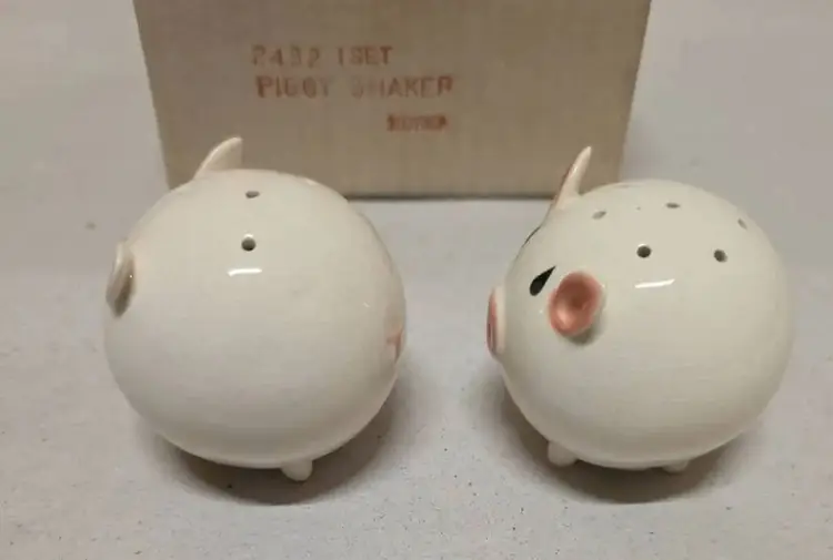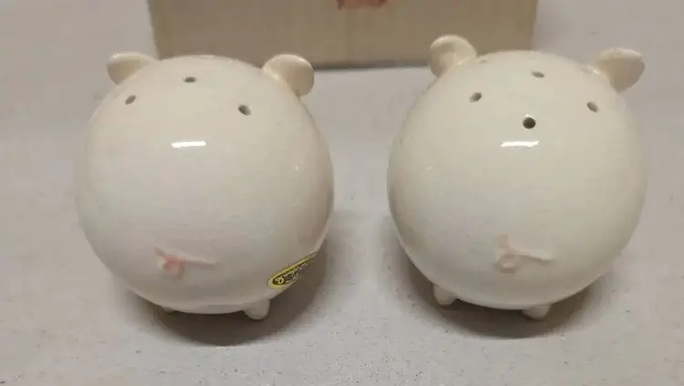 These vintage Josef Originals round pig piggy salt and pepper shakers set is a charming addition to any kitchen or dining table. Made of ceramic and porcelain in pink and white, these small shakers feature a round shape and animal theme, perfect for all occasions. With its original design from the 1960s, this collectible set includes a pepper shaker and salt shaker, both reusable and hand wash only. Manufactured in Korea, this unique set is a must-have for collectors of shakers and those who appreciate retro kitchen decor.