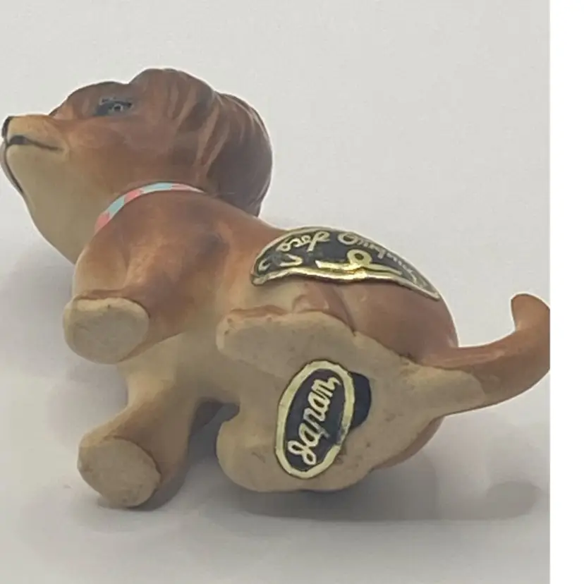 This pup is in very good condition with no chips or cracks. Look at that blue and pink collar… just a cutie. See photos for details.