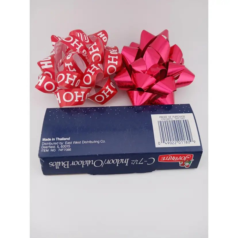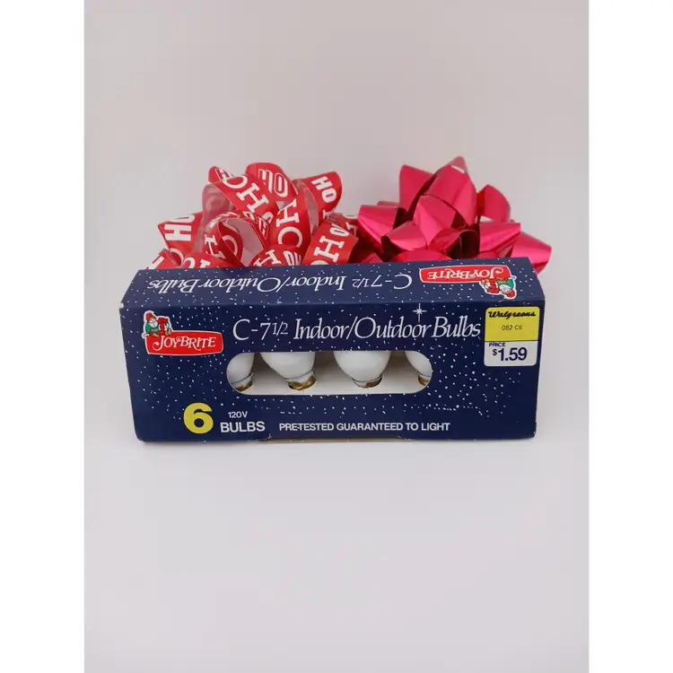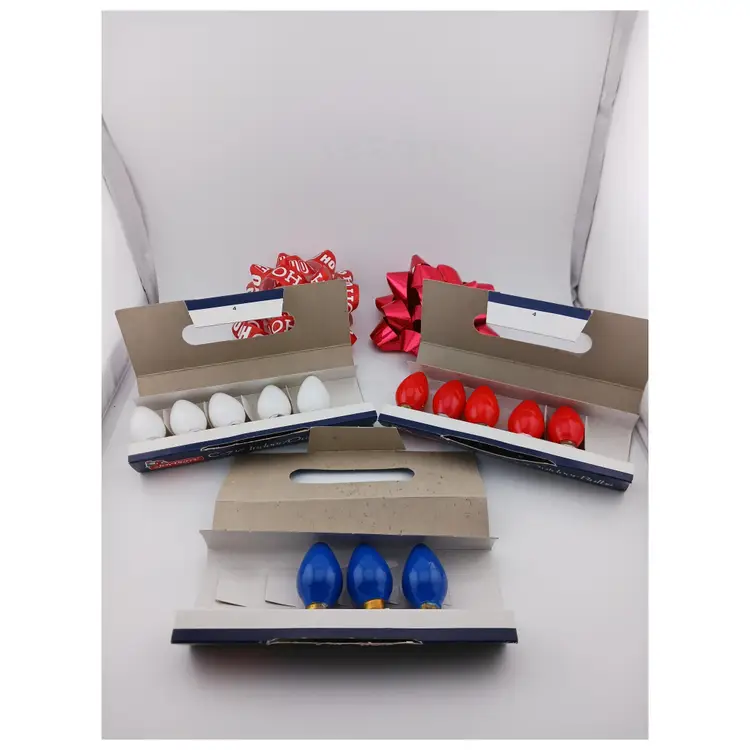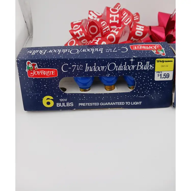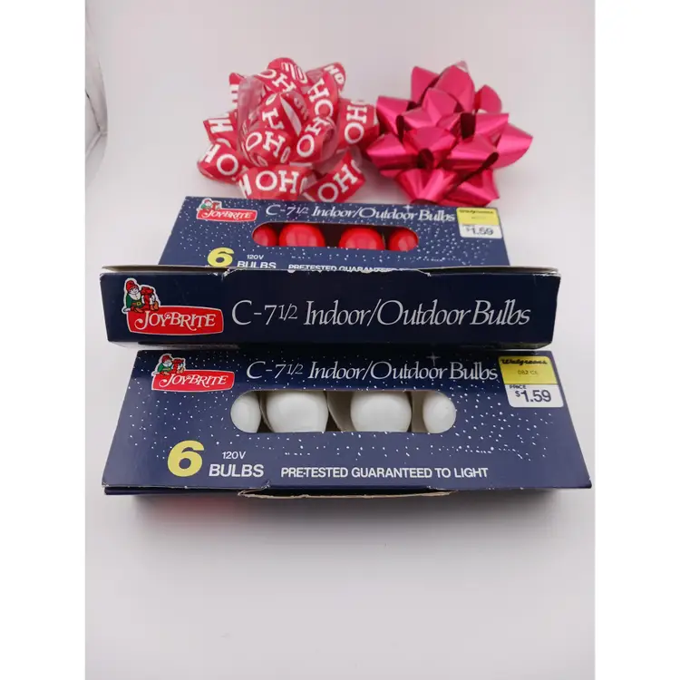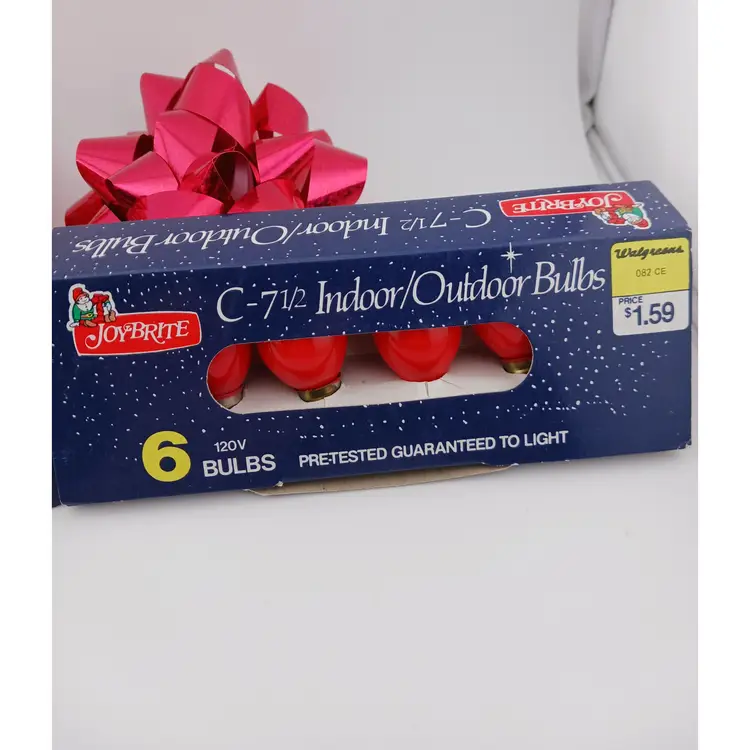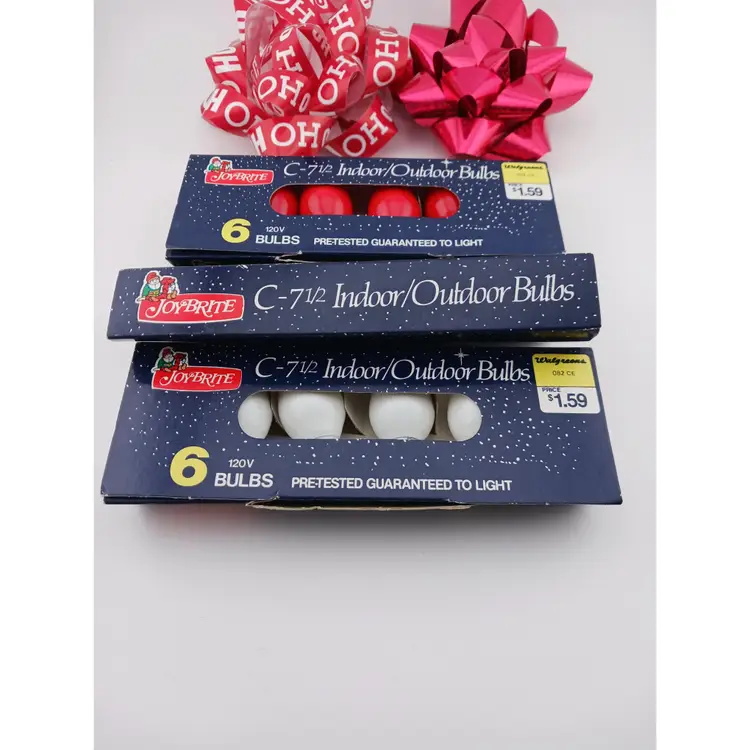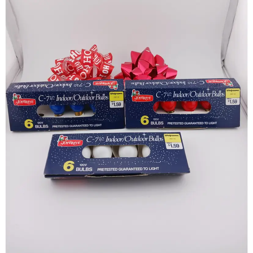 Three packs of lights; white, red and blue. The white and red package have 4 bulbs each and the blue pack has 3 bulbs. These were made for Walgreens and are 120 volts.