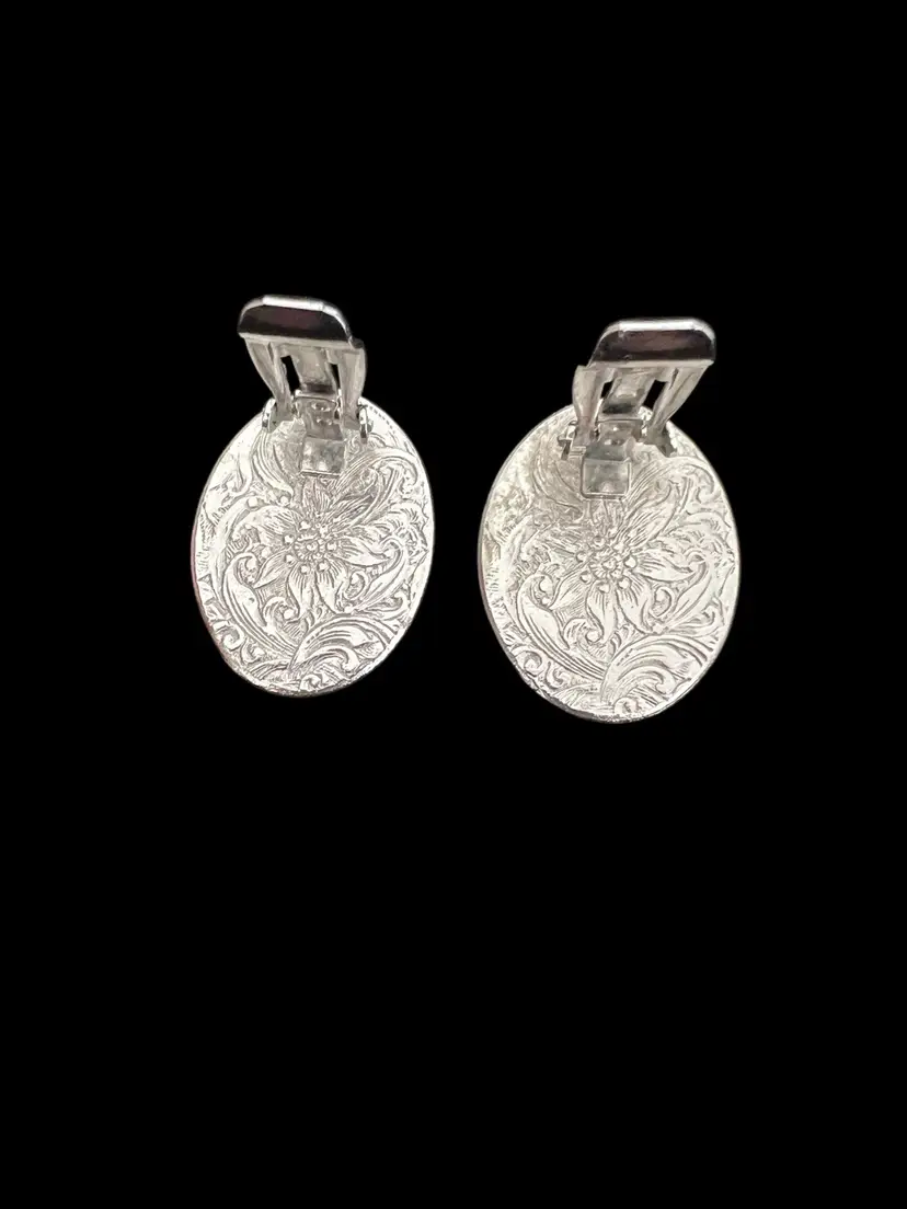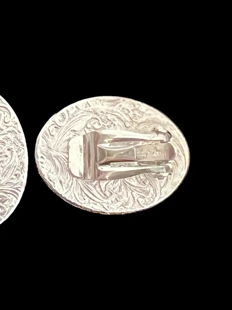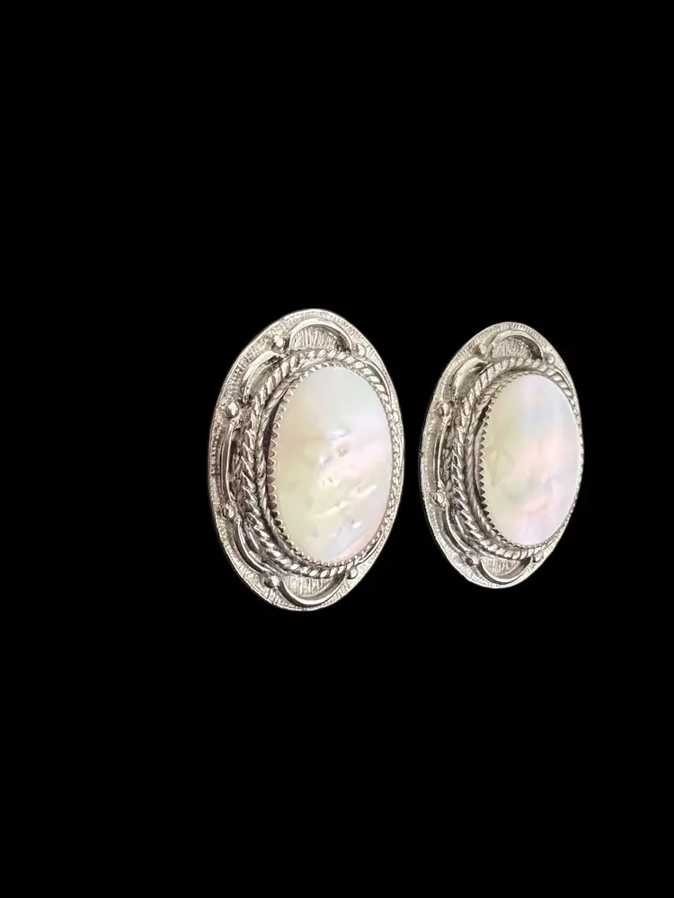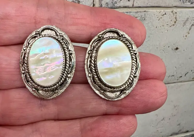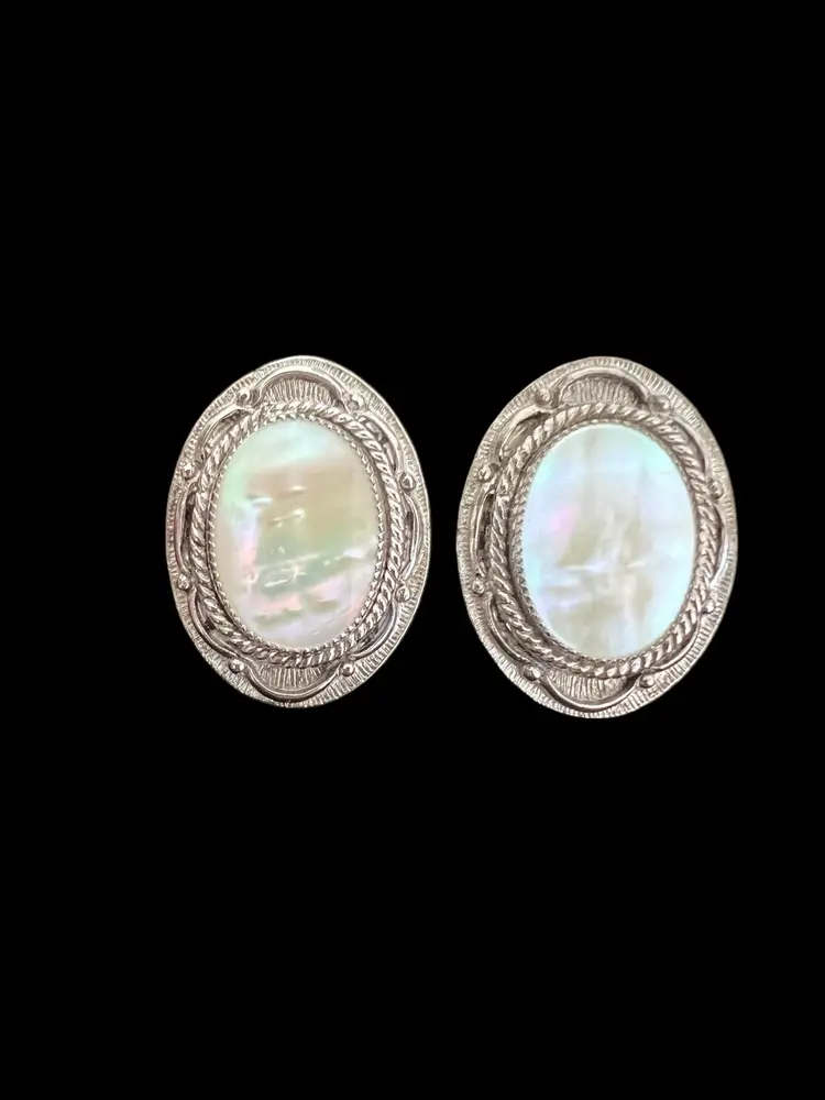 Vintage Judy Lee MOP Mother of Pearl Silver Tone Southwestern Clip-on Earrings #ofc-2