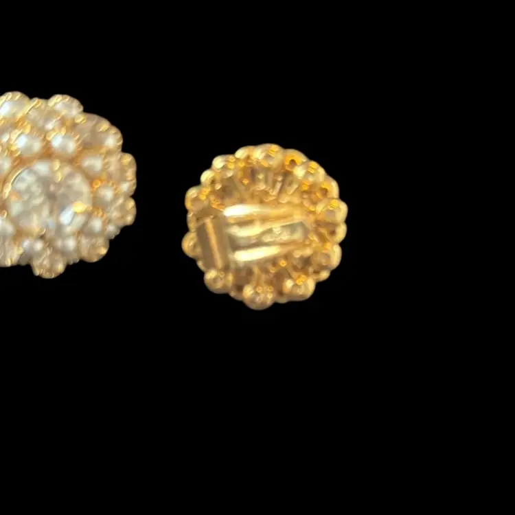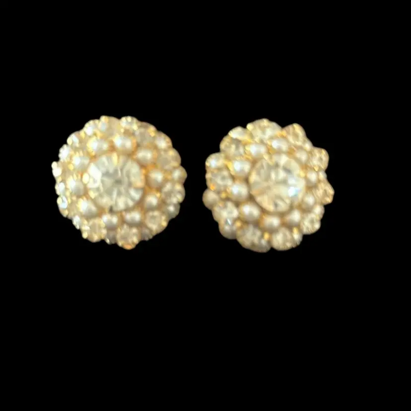 FREE SHIPPING in U.S. only! Vintage JUDY LEE set Brooch and Clip Earrings Pearl and Rhinestones. Signed. Collectors Items.
