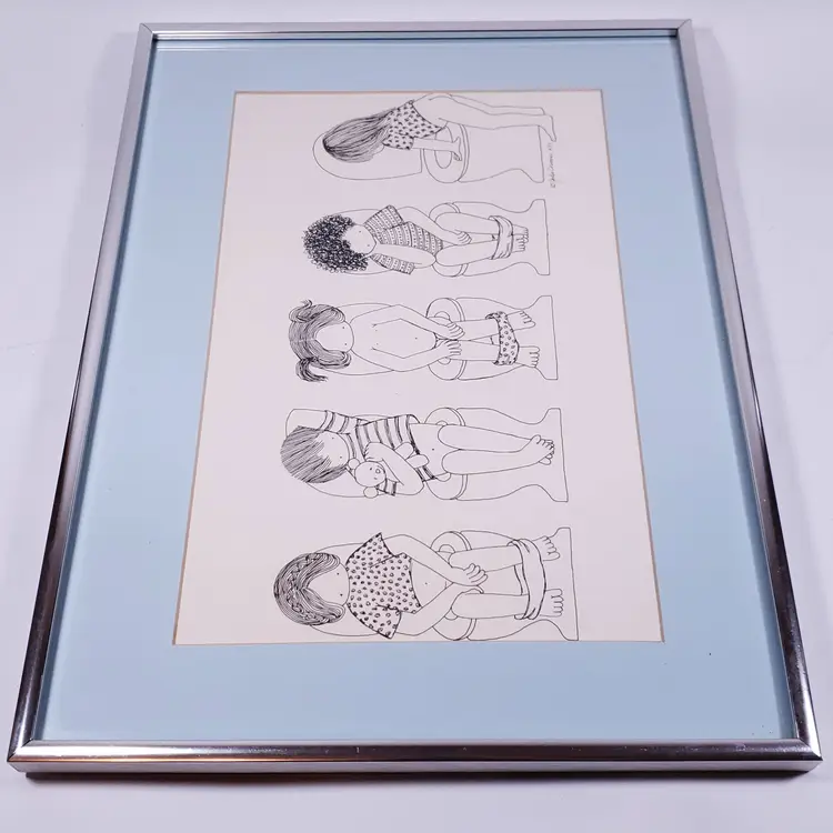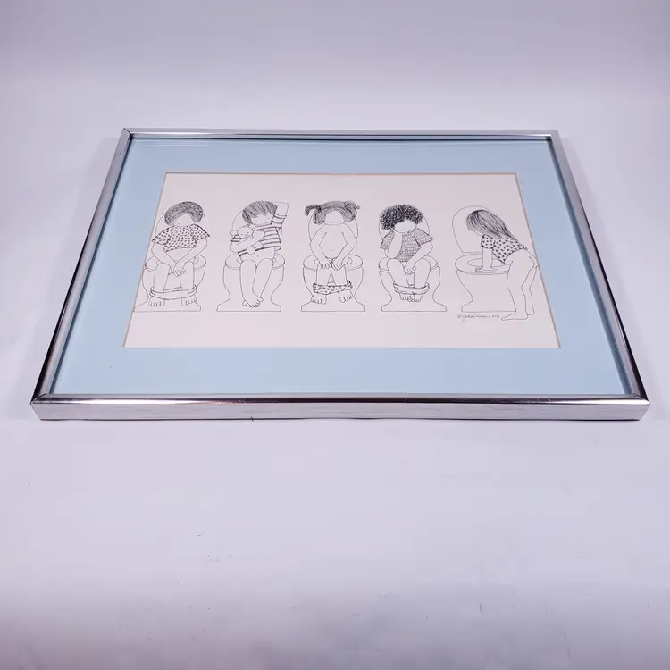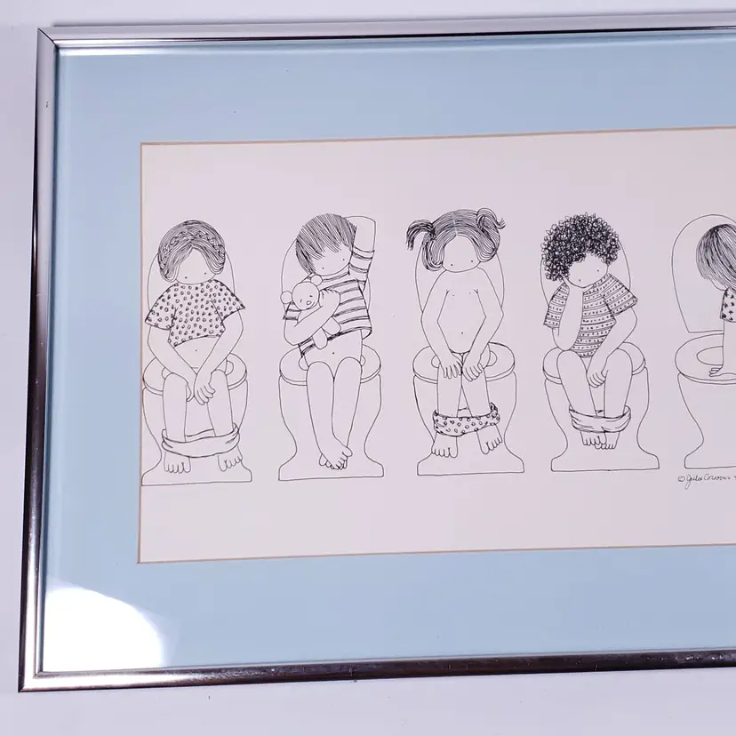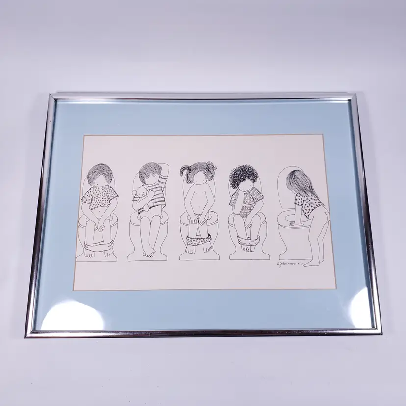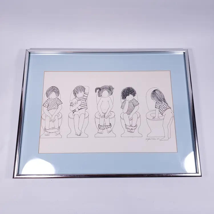 Vintage JULIE CORSOVER 1973 Lithograph Print Whimsical Child BATHROOM WALL DECOR