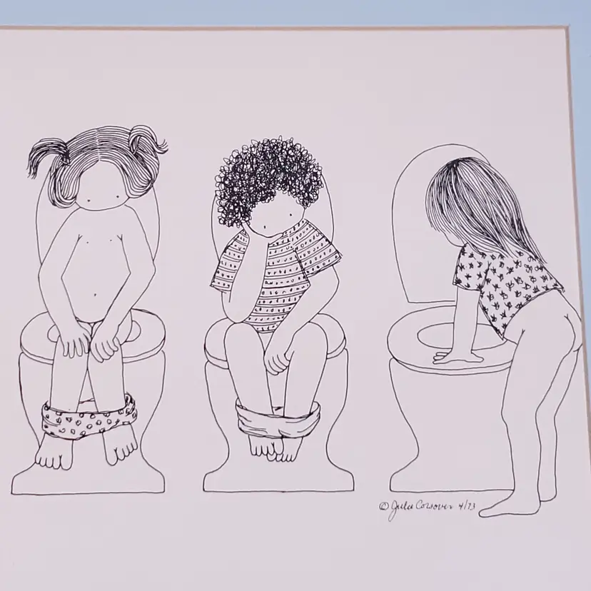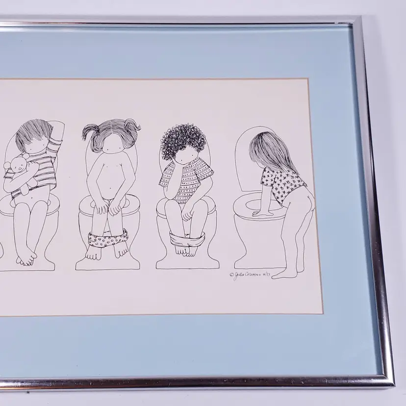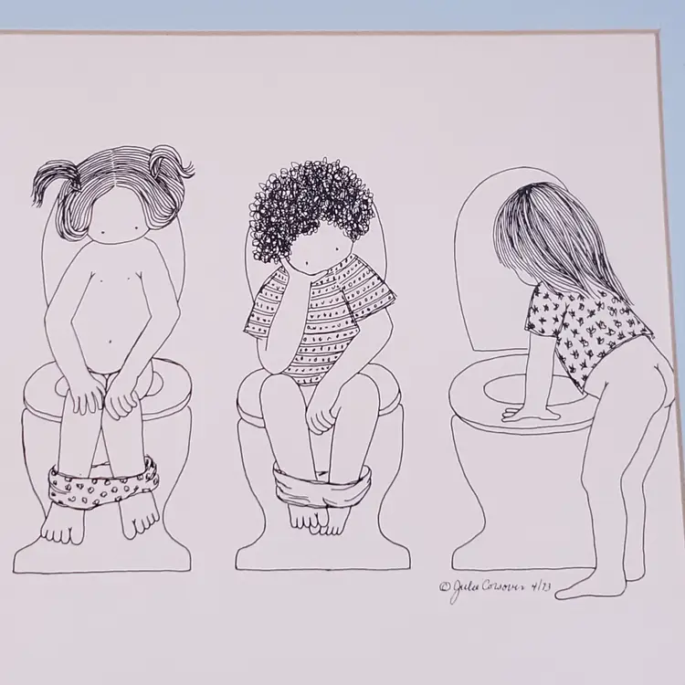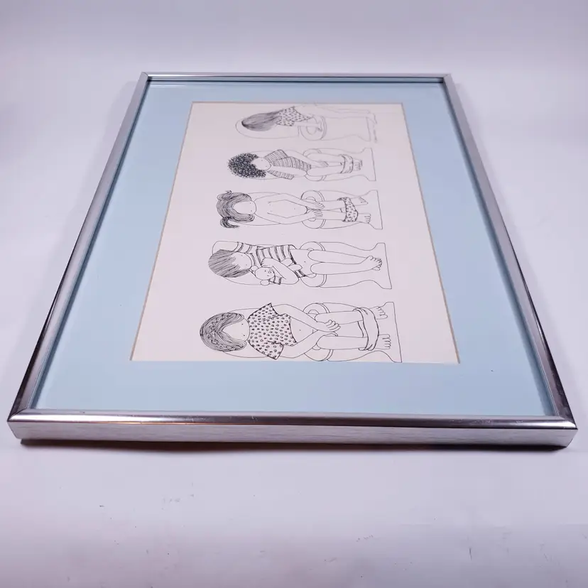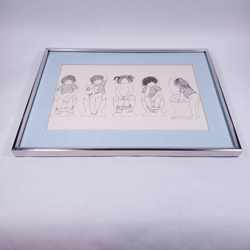 Vintage JULIE CORSOVER 1973 Lithograph Print Whimsical Child BATHROOM WALL DECOR