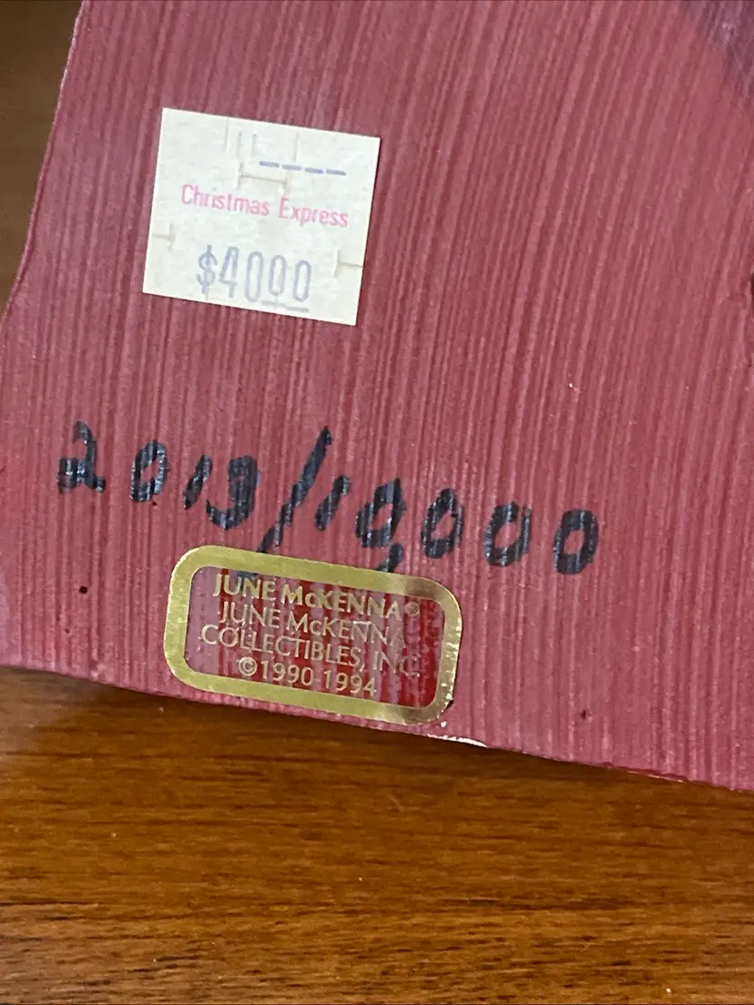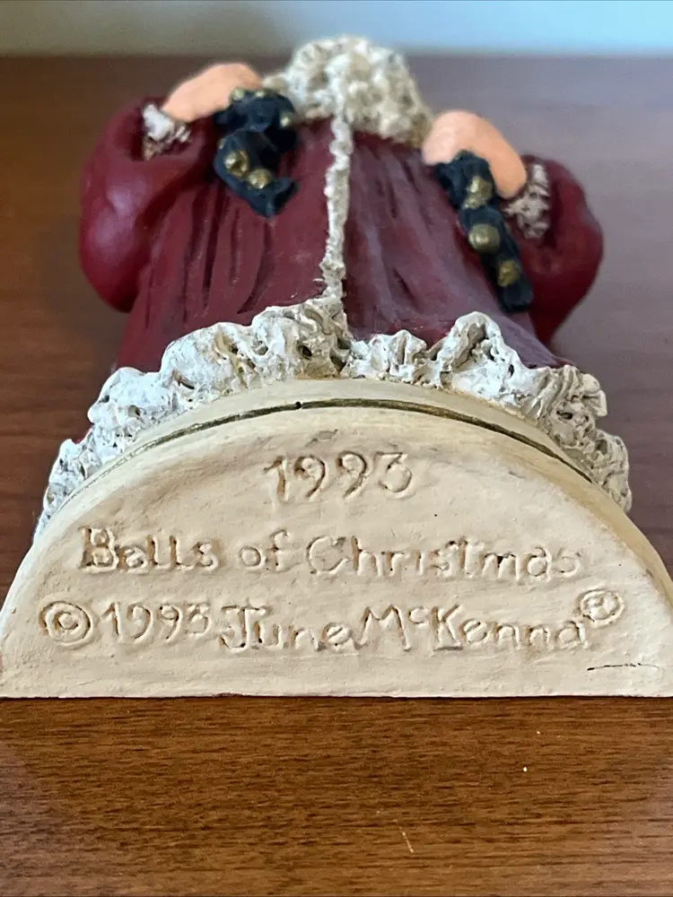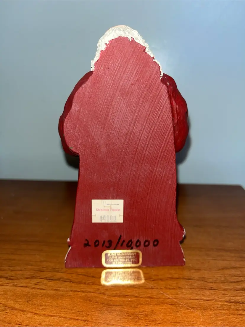 Vintage June McKenna flat back Santa figurine 1993 "Bells of Christmas" numbered #2,013/10,000. Approximately 5.5" tall. Pre-owned and in good condition. Expect normal wear such as scuffs or scratches. See photos and ask any questions prior to purchase.