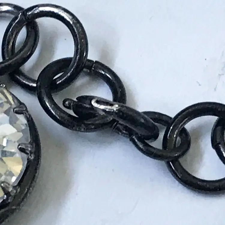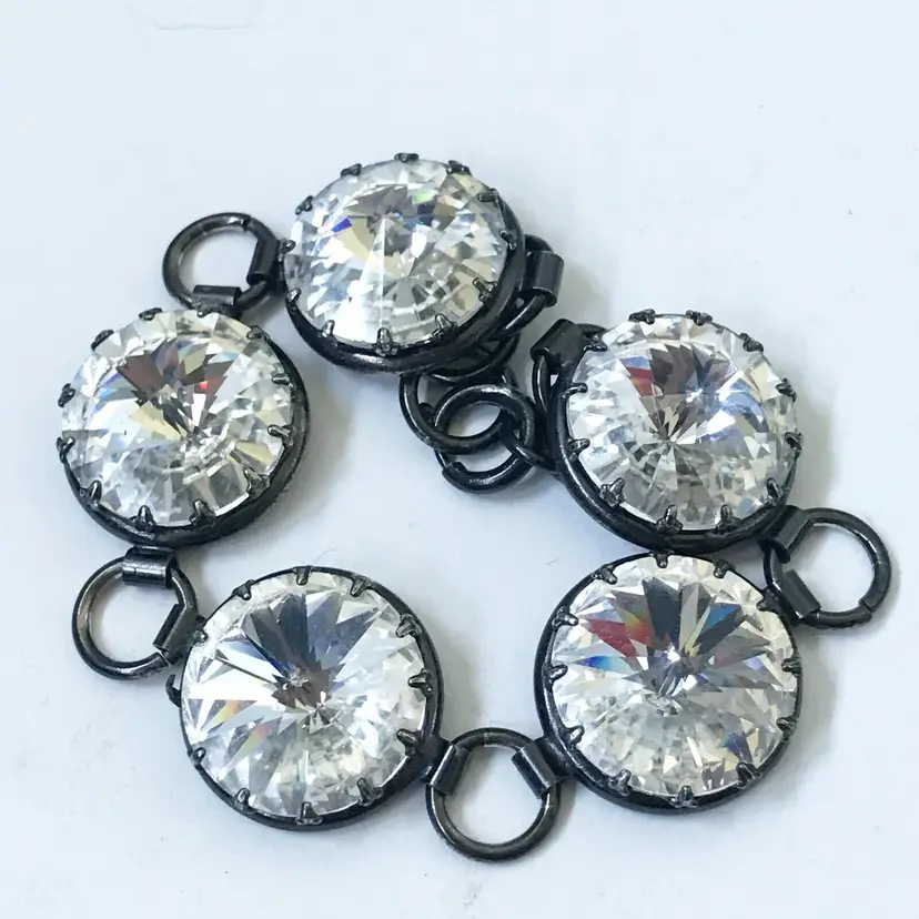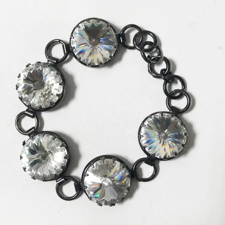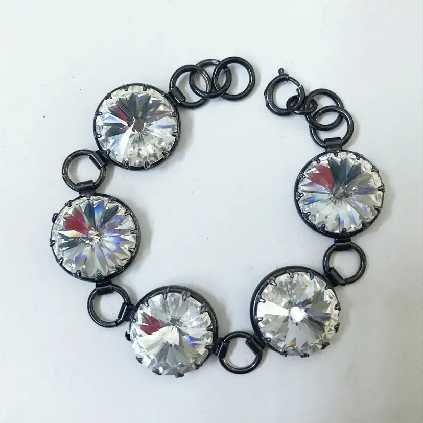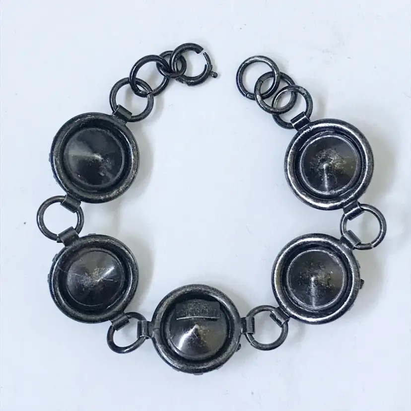 – Brand: Junko Shimada – Type: Bracelet – Closure: Spring Ring – Color: Gun Metal – Style: Chain – Main Stone Color: Clear – Country/Region of Manufacture: France – Material: Rhinestone – Setting Style: Prong – Chain Type: Round Link