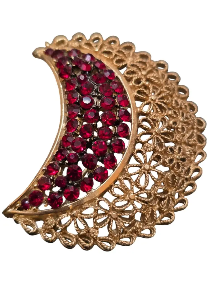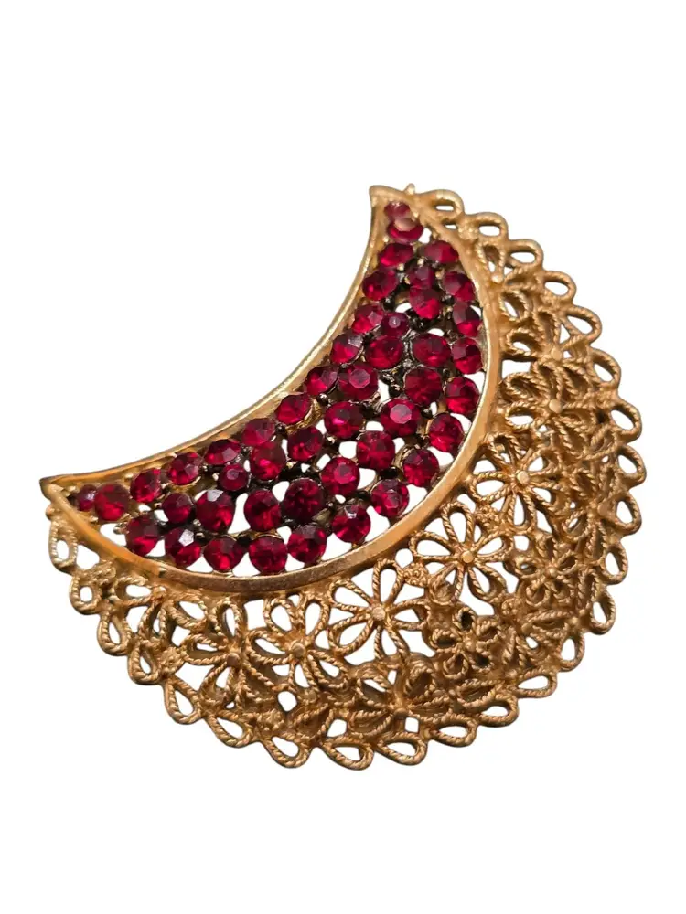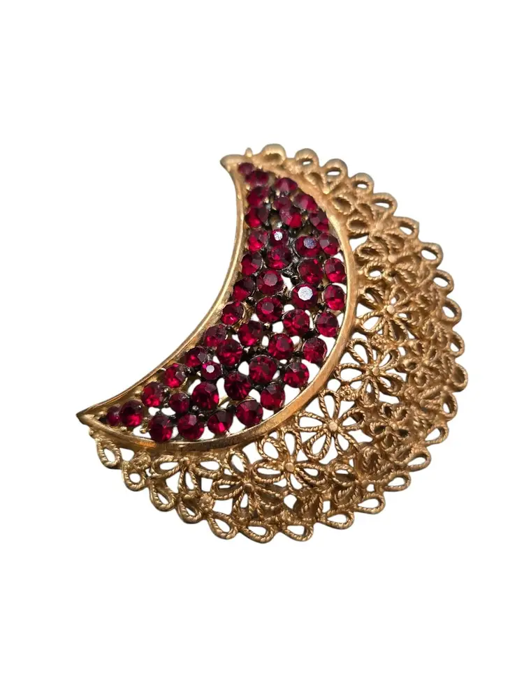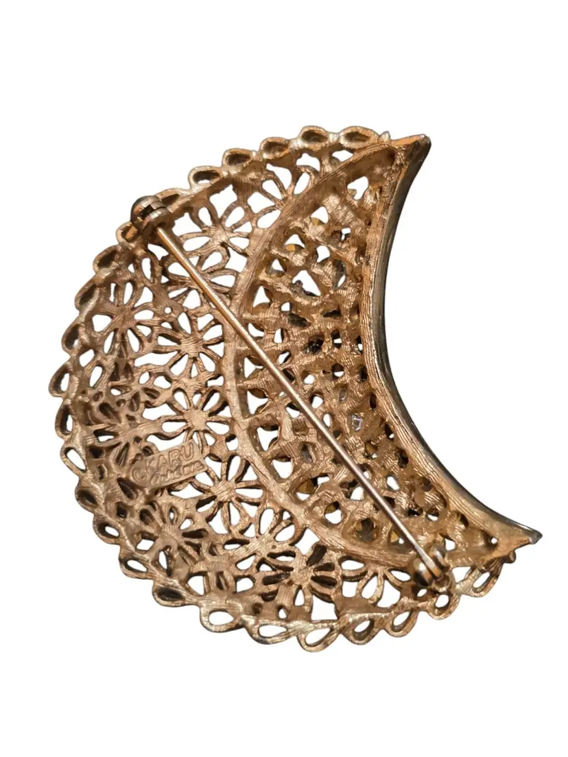 Vintage Karu Arke Rhinestone Crescent Brooch (A7640)