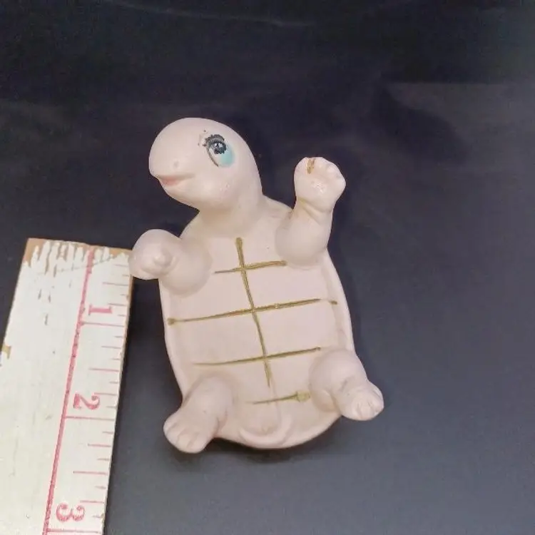 Vintage Kelvin pink turtle figurine the circus 1950s figurine is adorable pink turtle flipped over on his back and great vintage condition does have a few scrapes to his paint but no chips or cracks still displays wonderfully measures approximately 2 1/2 in Long 2 1/2 in tall please see all pictures as they're the best description all items from a smoke-free home with pets experienced fragile shipper