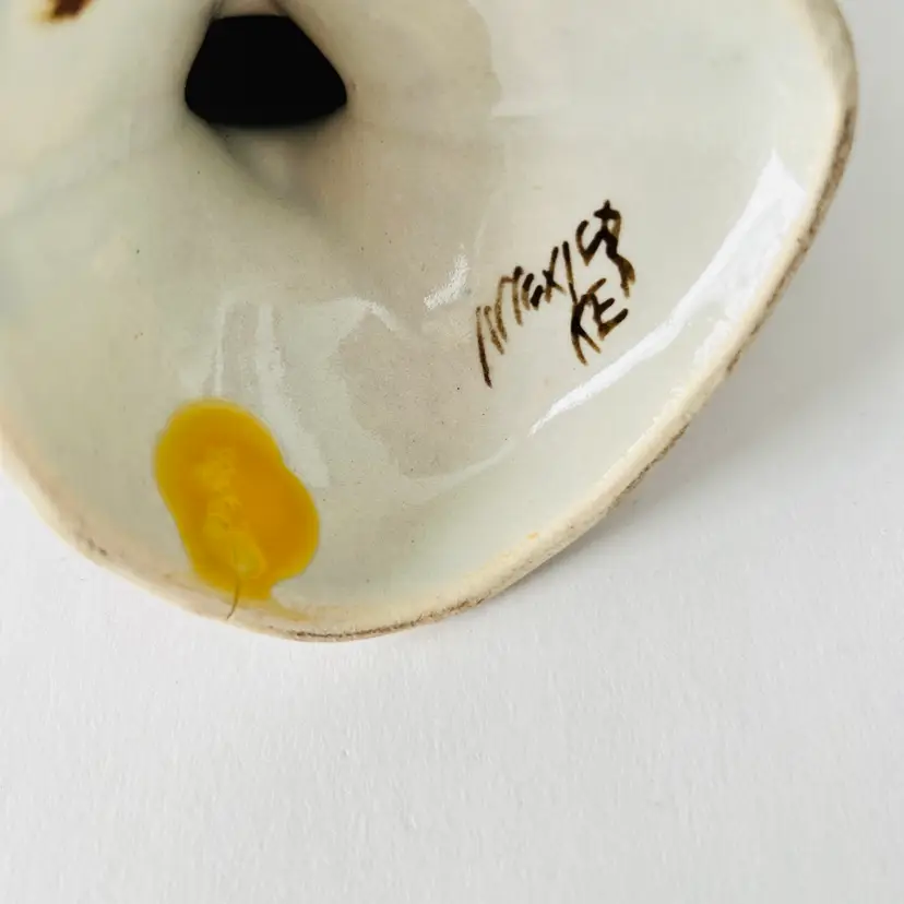 Excellent. No chips or crazing. There is a small pre-existing crack (shown) on the base from manufacture. Someone applied a substance inside at the crack.