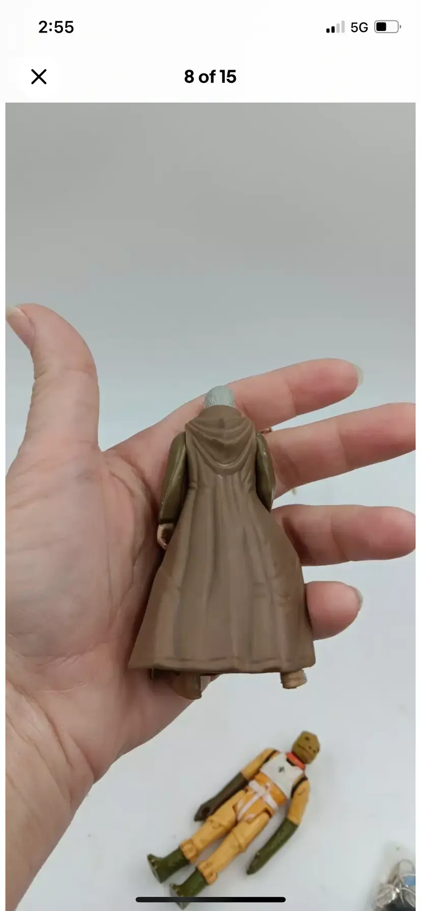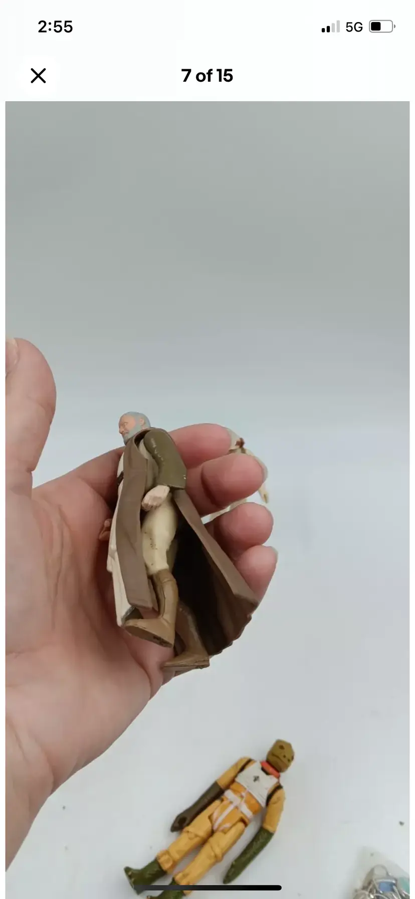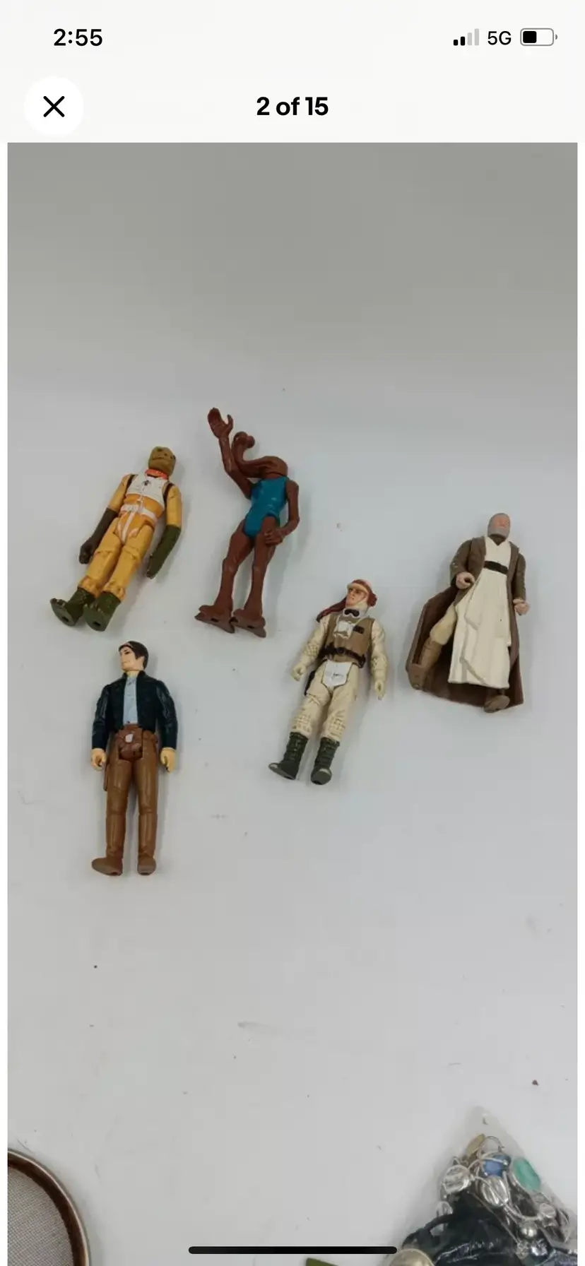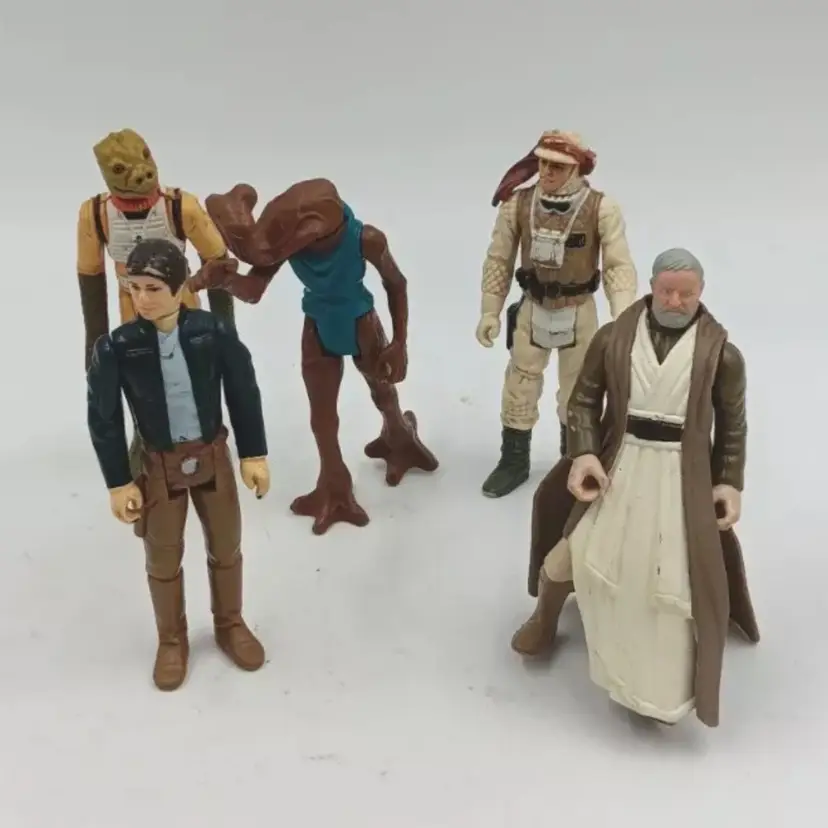 This vintage lot of 5 Star Wars action figures from Kenner is a must-have for any Star Wars fan. The figures showcase iconic characters such as Obi-Wan Kenobi, Luke Skywalker, Han Solo, and even and 2 aliens of the Resistance. The figures are made of durable plastic and are in scale 1:18.