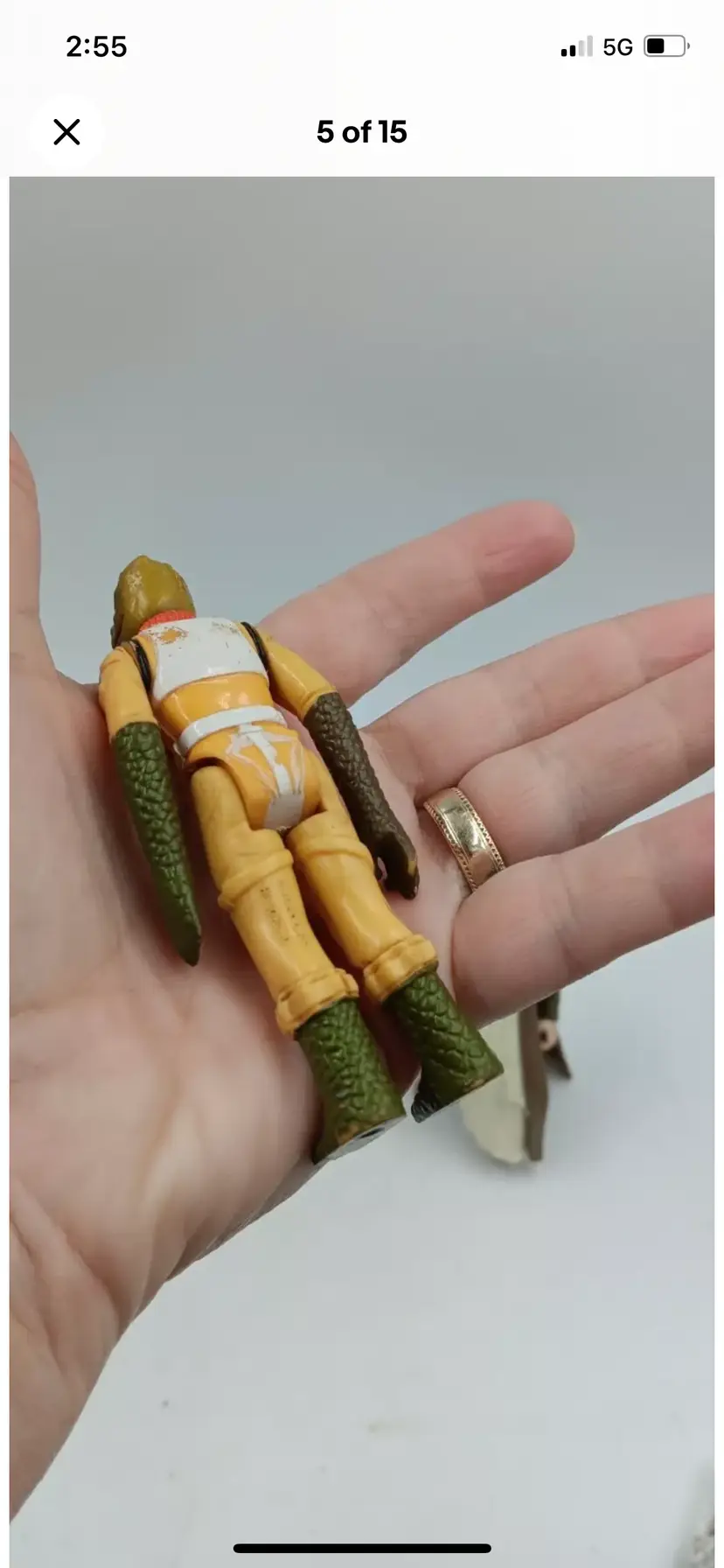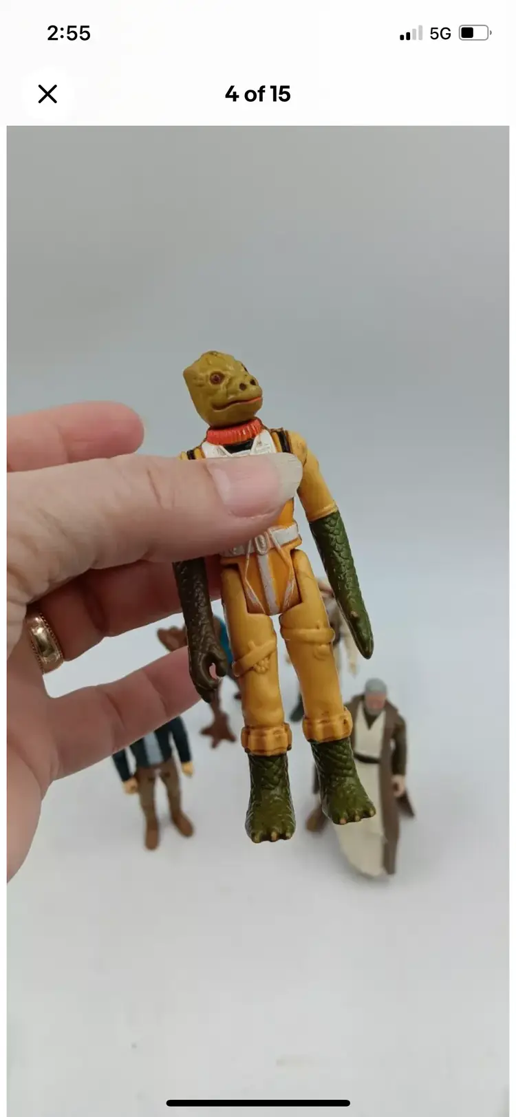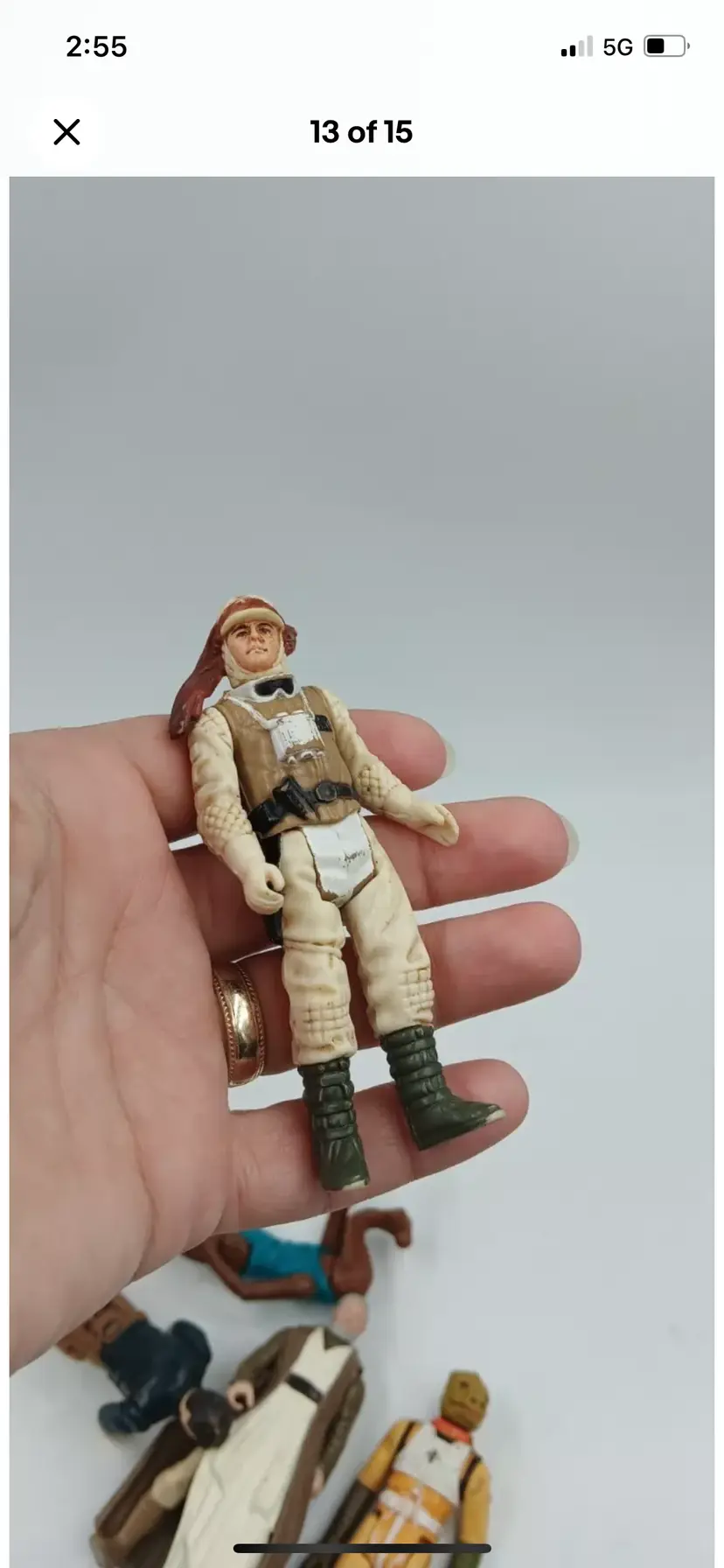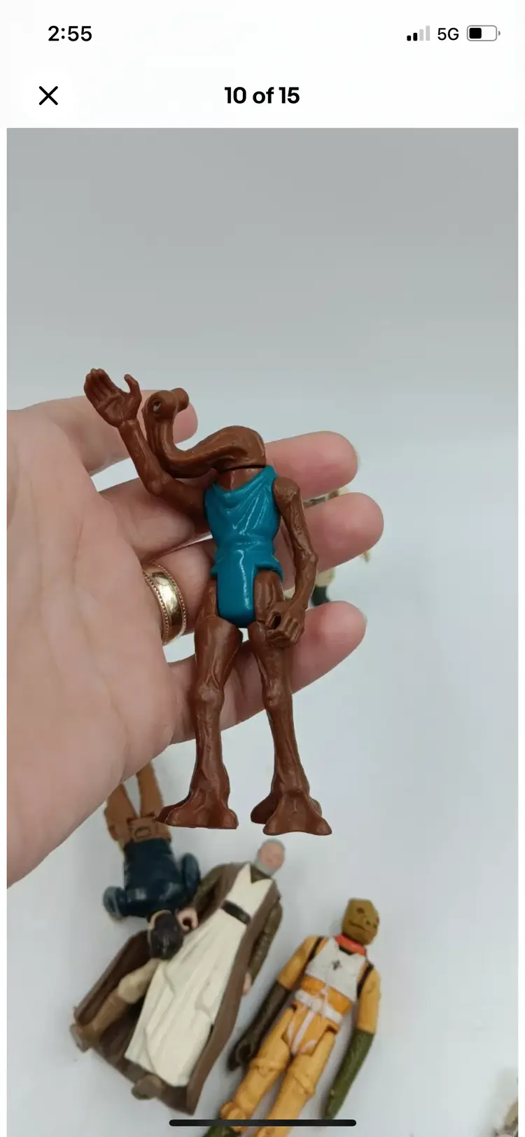This vintage lot of 5 Star Wars action figures from Kenner is a must-have for any Star Wars fan. The figures showcase iconic characters such as Obi-Wan Kenobi, Luke Skywalker, Han Solo, and even and 2 aliens of the Resistance. The figures are made of durable plastic and are in scale 1:18.