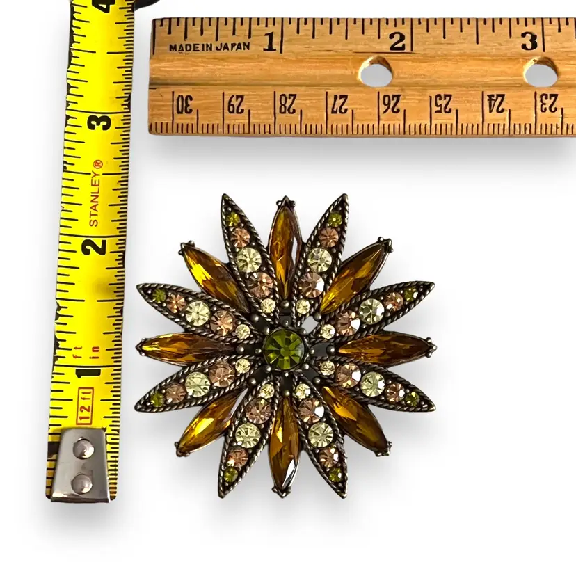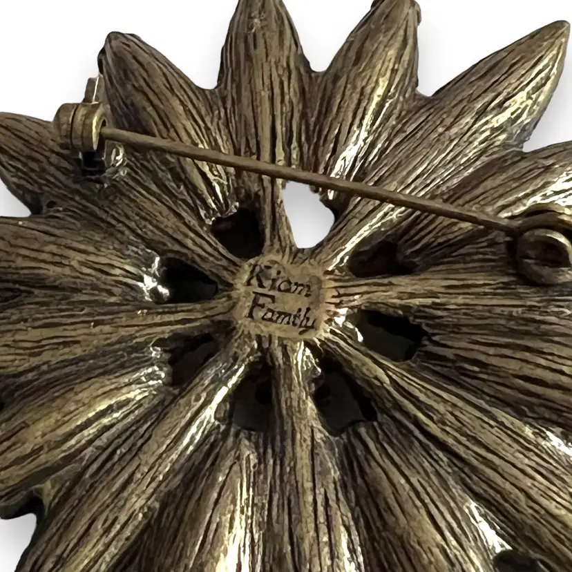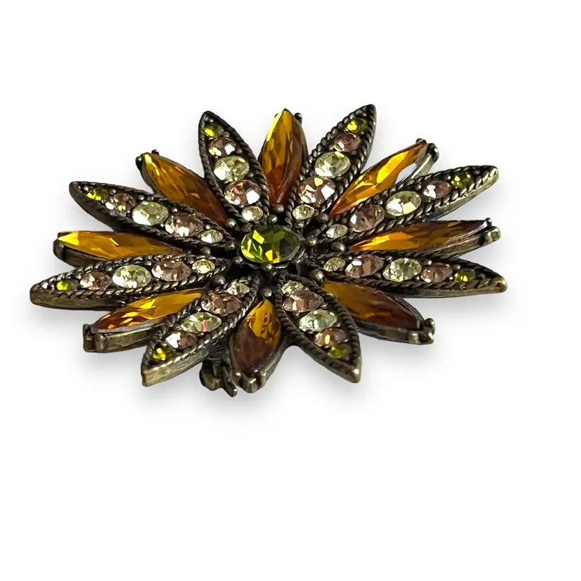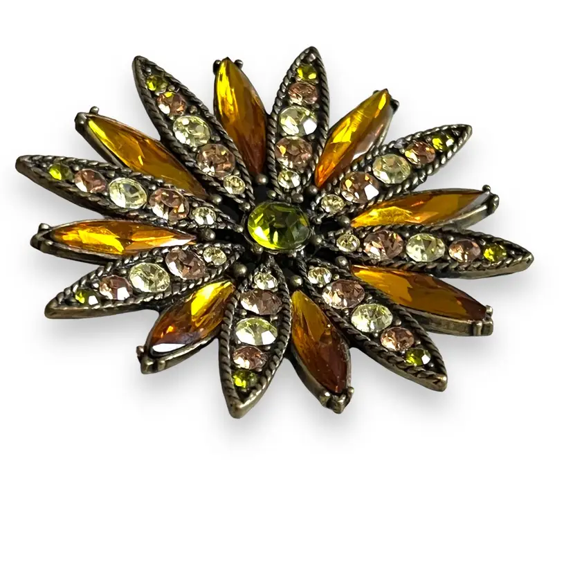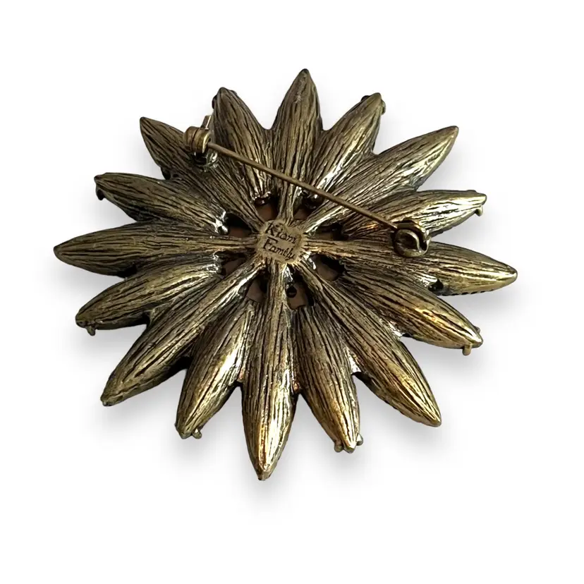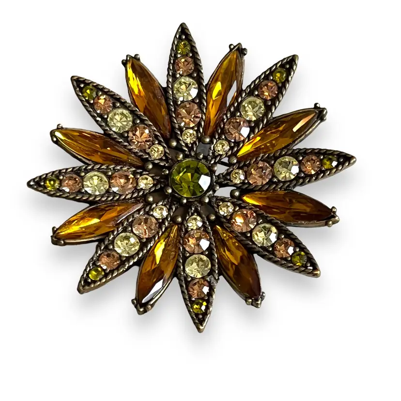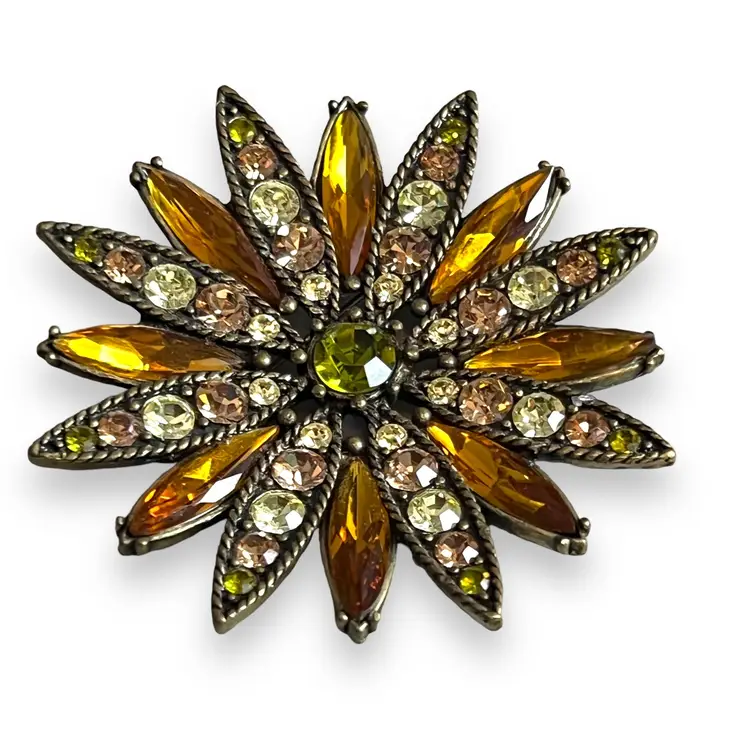 Here We Have a Vintage Kiam Family Starburst Bronze Tone Peridot Colored Signed Brooch