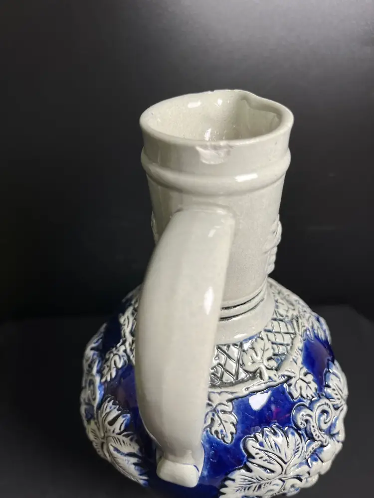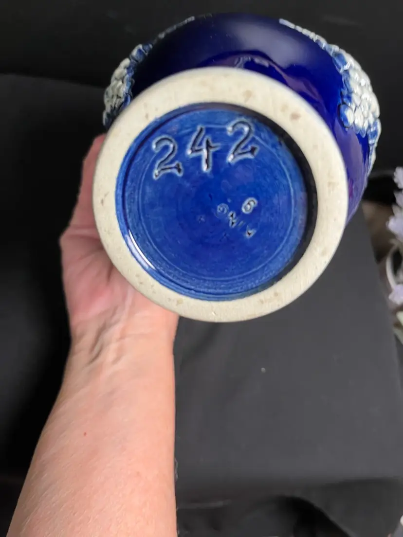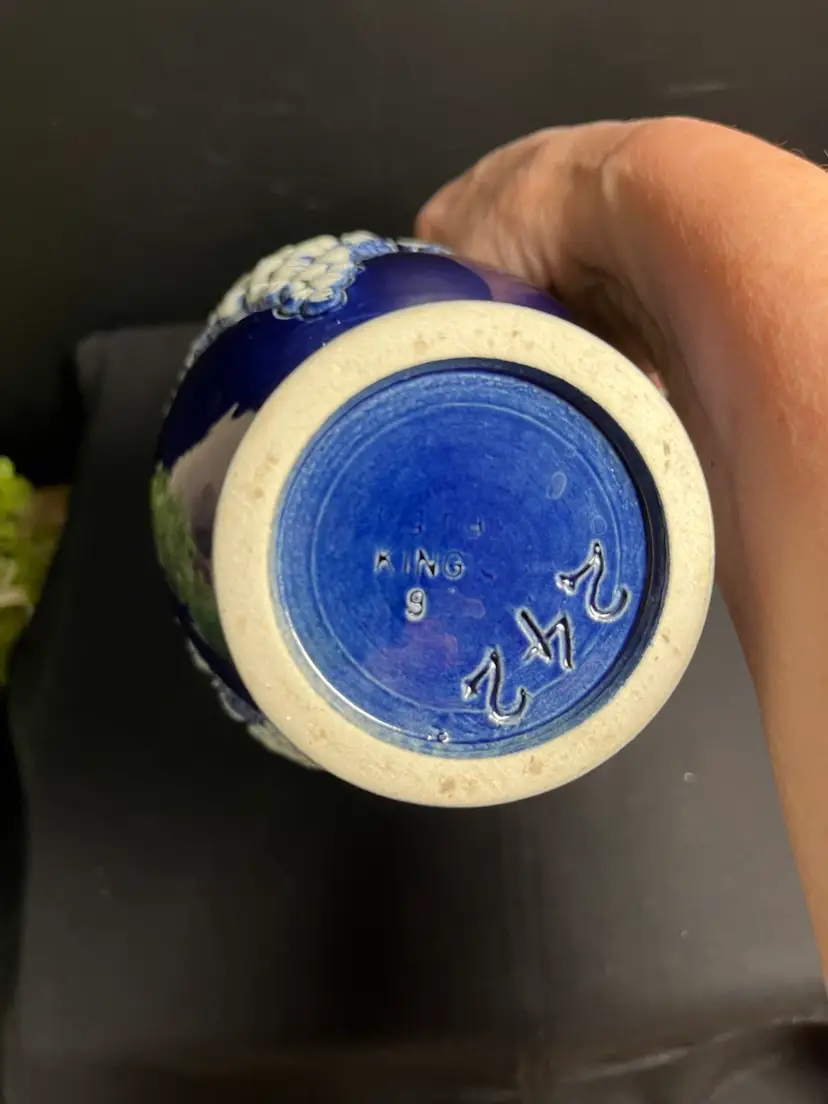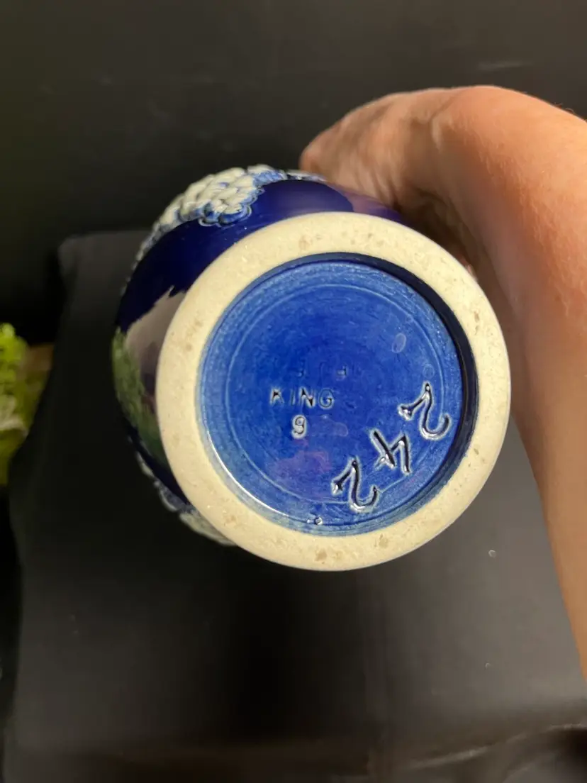 Engraved King with 9 beneath. #242 on bottom. Does have 2 chips. Check out photos. This is a gorgeous piece regardless. I would consider this to be in very good vintage condition regardless of the chips. Measures approx 9"H, Mouth opening 2" diameter, at widest point is 5", 1 1/2 Lb-Be sure to comp this one, guys....