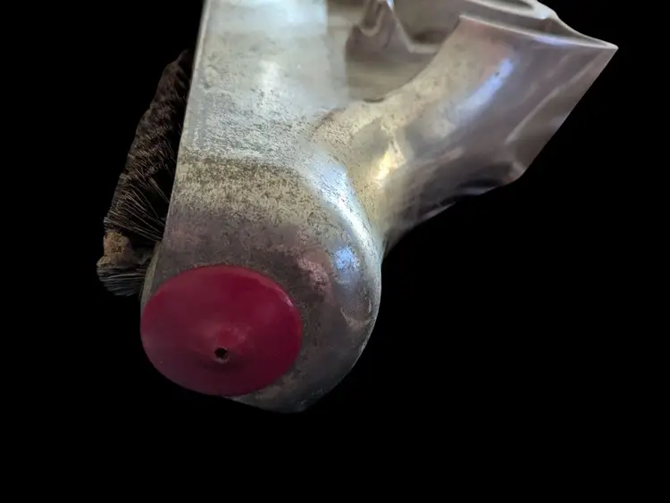 The Vintage KIRBY Vacuum Polisher Head Original Brush Belt Housing Attachment is a rare and valuable replacement part for Kirby vacuum cleaners. Made of durable metal with a glossy silver finish, this brush head/tool attachment is designed for electric corded power sources. This authentic Kirby product is compatible with Kirby brand vacuums and includes the polisher head in the set. With dimensions of 6 inches in height, 4 inches in depth, and 14 inches in width, this unit is a unique and sought-after piece for Kirby vacuum enthusiasts looking to maintain the original performance of their cleaning appliance. There is a strip of tape over the name on front.