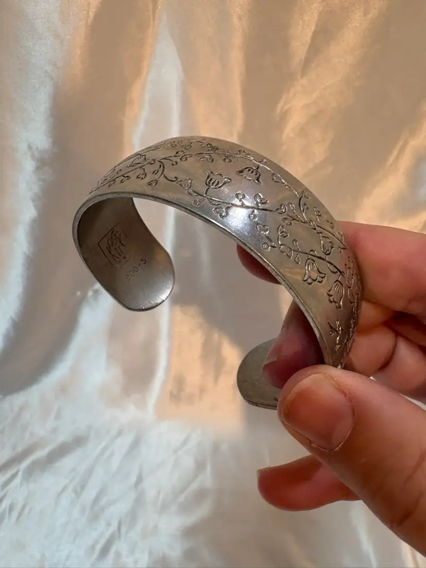 Vintage Kirk Stieff Pewter Floral Cuffed Braclet