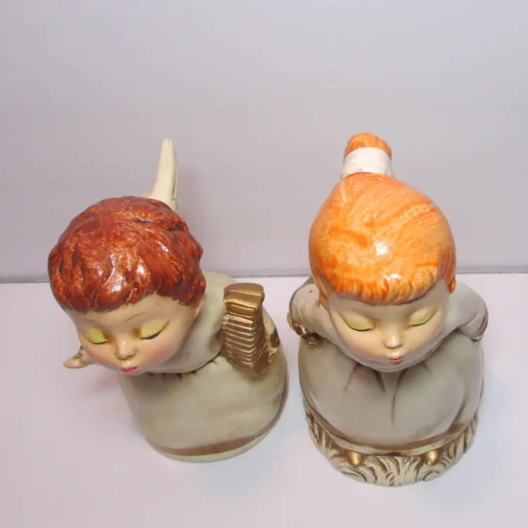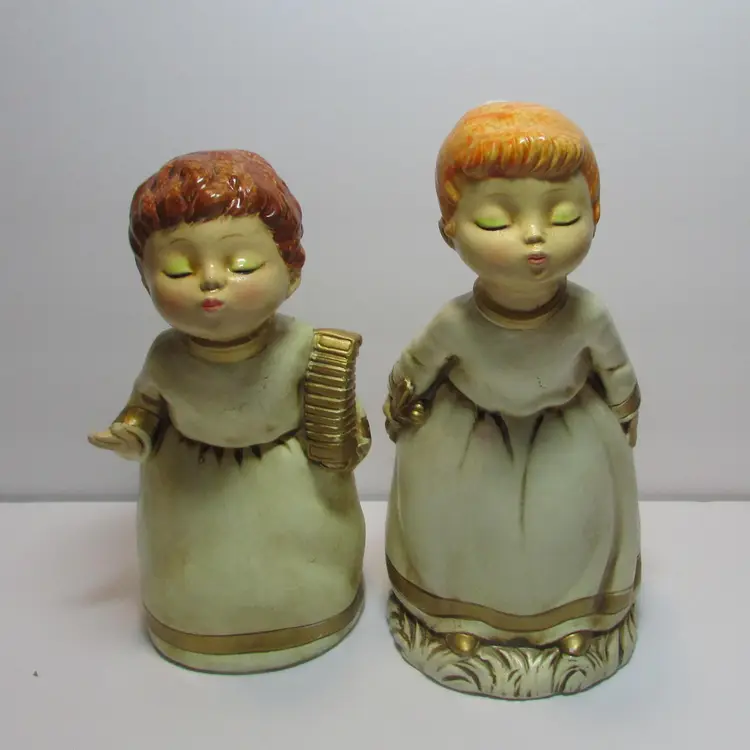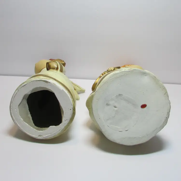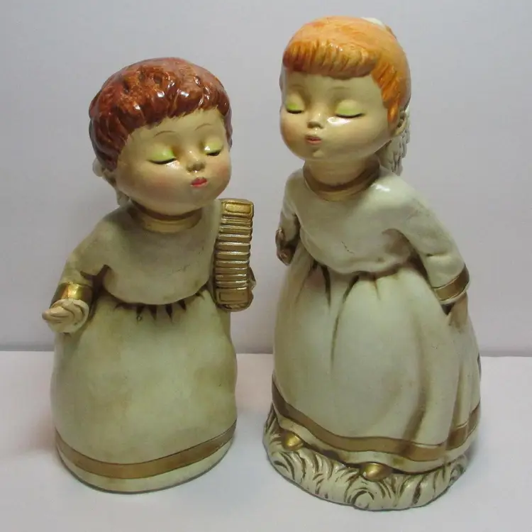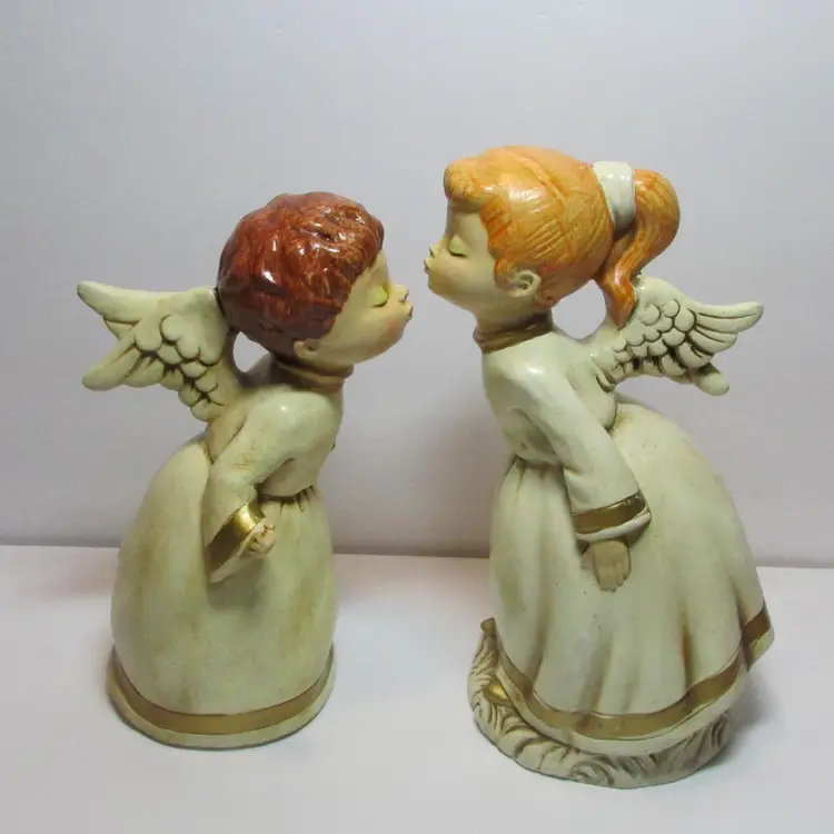 This adorable set has some damage, the boy should have been on a musical base, but it has broken off. He is now lower so they no longer line up to kiss, but you could add a small riser to level them out. They both have some general wear, but still a lovely set to display as is. The girl is about 10" tall. This is shipped from a smoke free home. Thanks for looking! locxb11